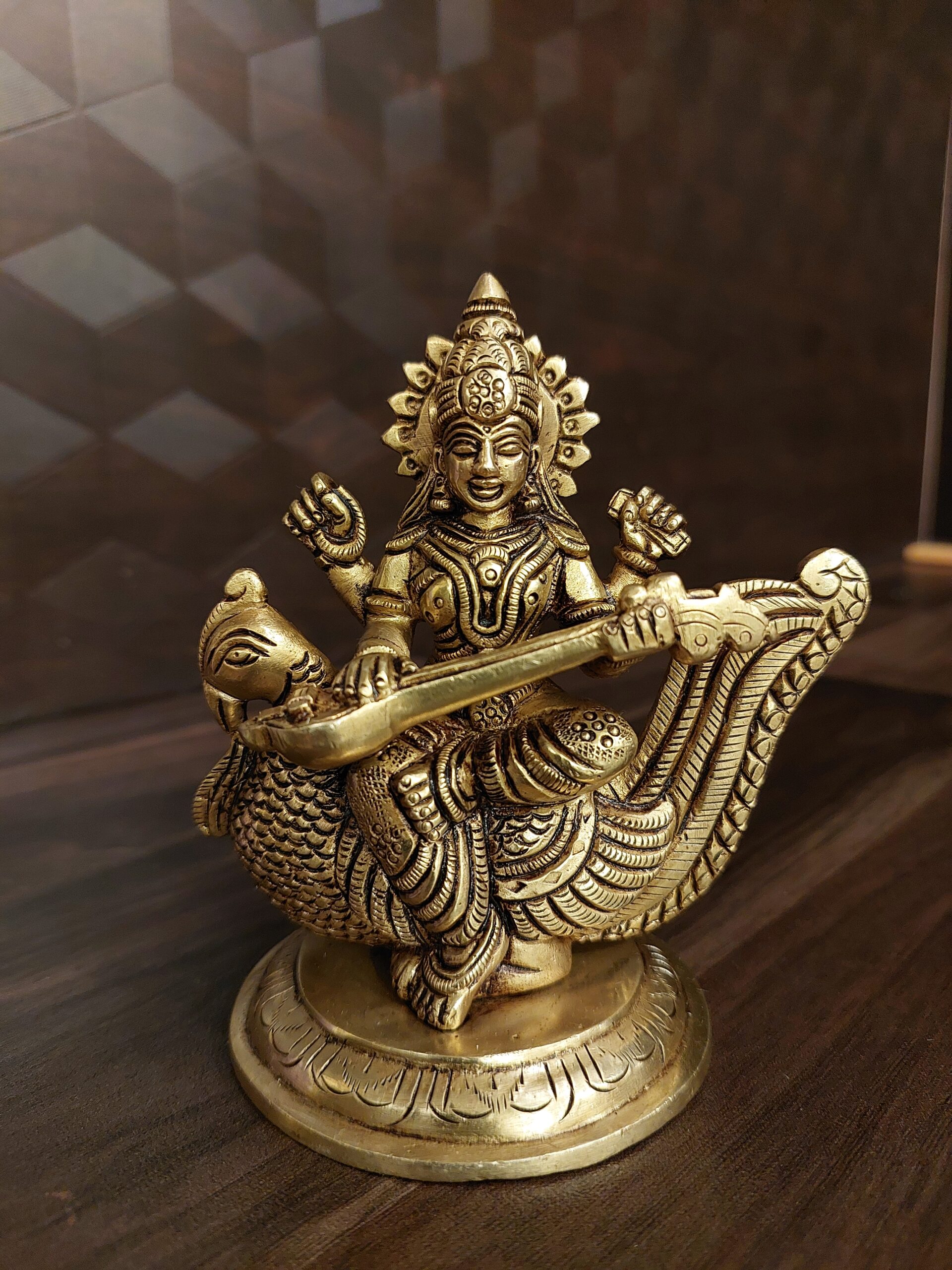 Brass Saraswathi Sitting on Annam Statue Benefits: