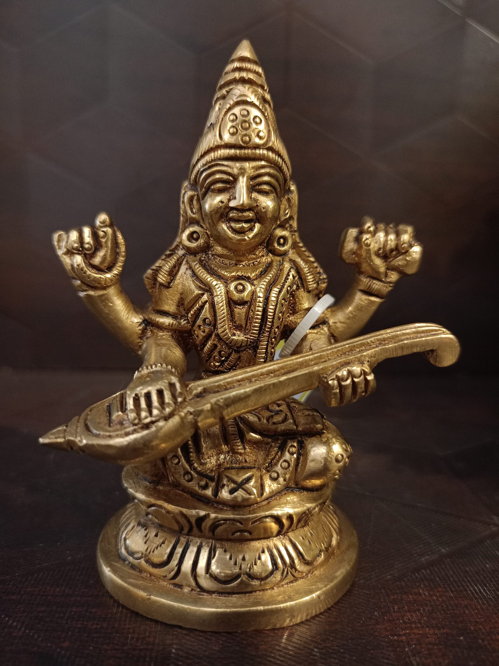 Brass Saraswathi Statue on Round Base 3.5″
