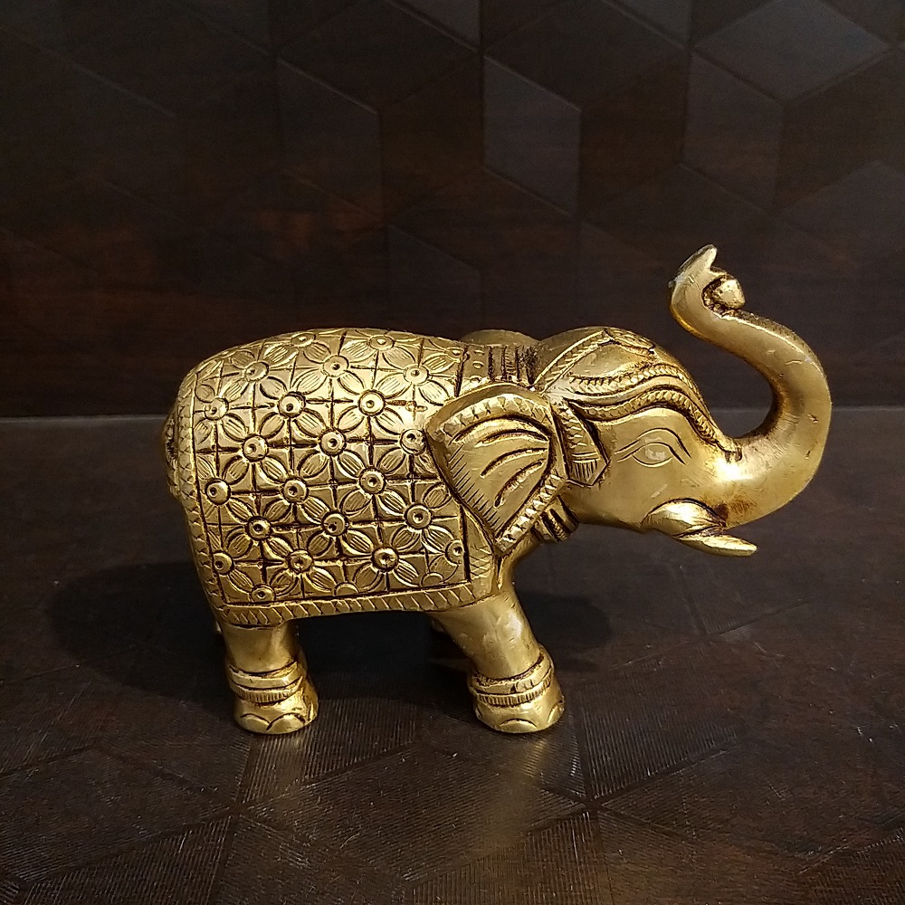 Brass Small Elephant with Flower Design Statue- 3″
