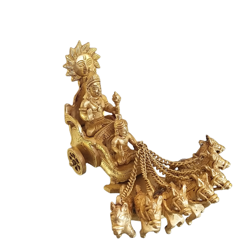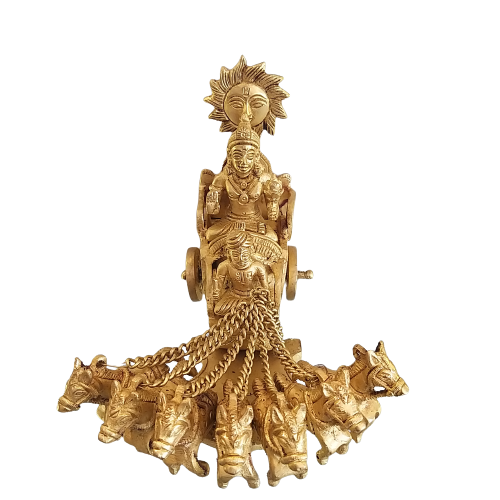 Lord Surya Bhagavan’s brass statue symbolizes the qualities of intelligence, individuality, courage, royalty, devotion, leadership, higher official, withstanding ability, immunity, fame, pride, honor, attitude, self-reliance and blesses all these qualities to their devotees too.