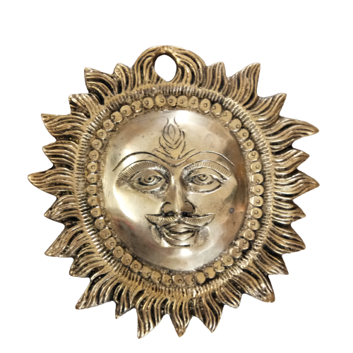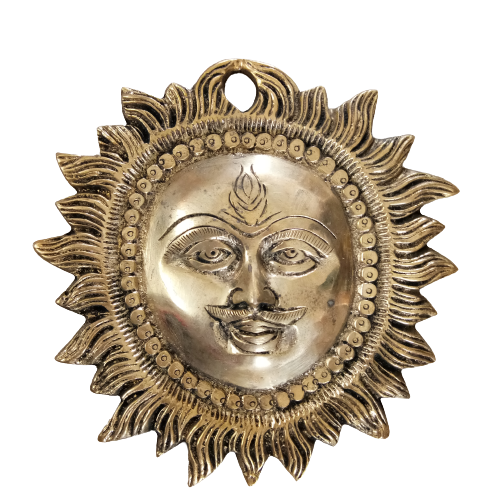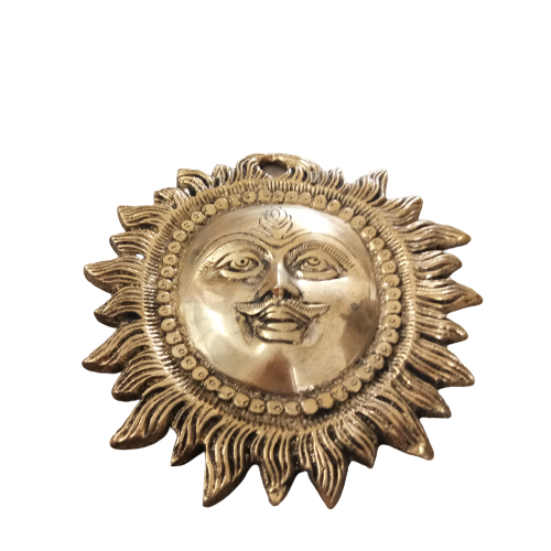 Brass Sun Face Wall Hanging symbolizes the qualities of intelligence, individuality, courage, royalty, devotion, leadership, higher official, withstanding ability, immunity, fame, pride, honor, attitude, self-reliance and blesses all these qualities to their devotees too.