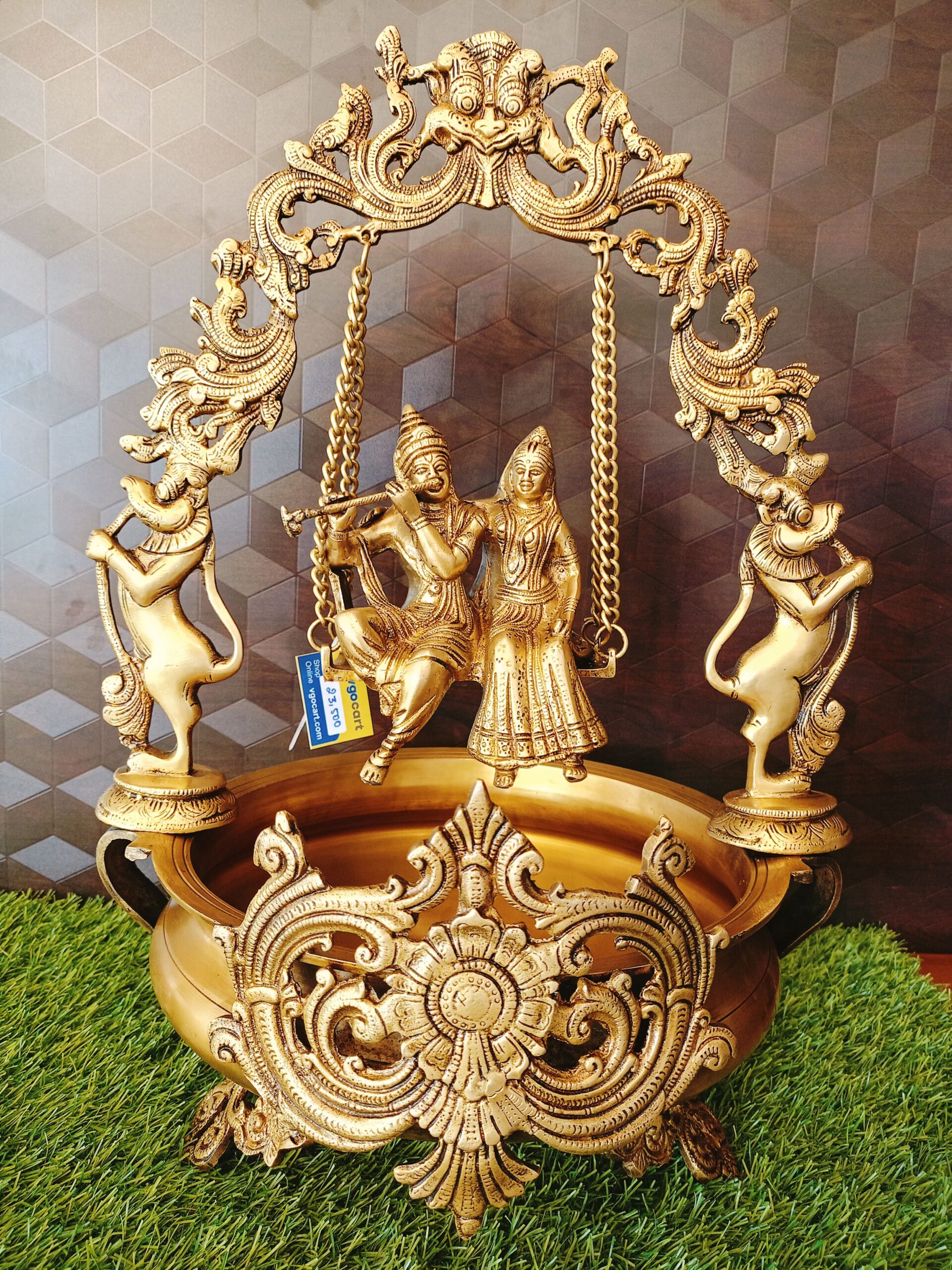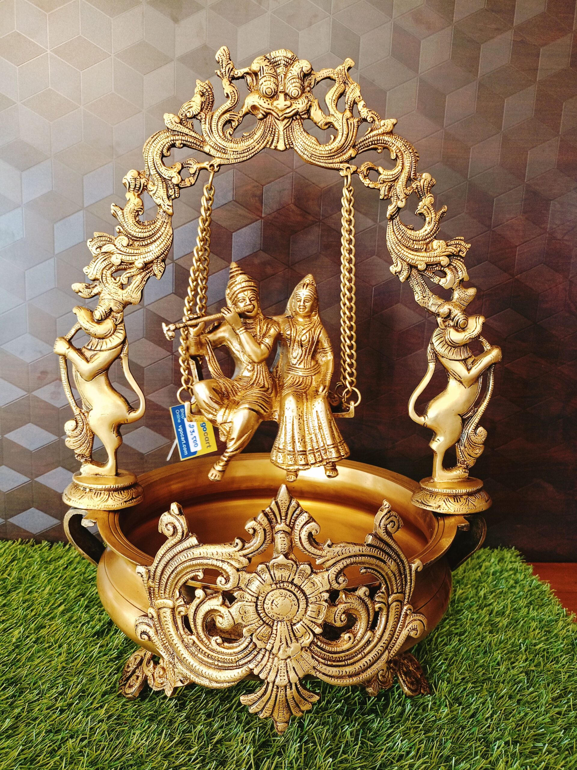 Brass Swing Radha Krishna Uruli Idol- 22″