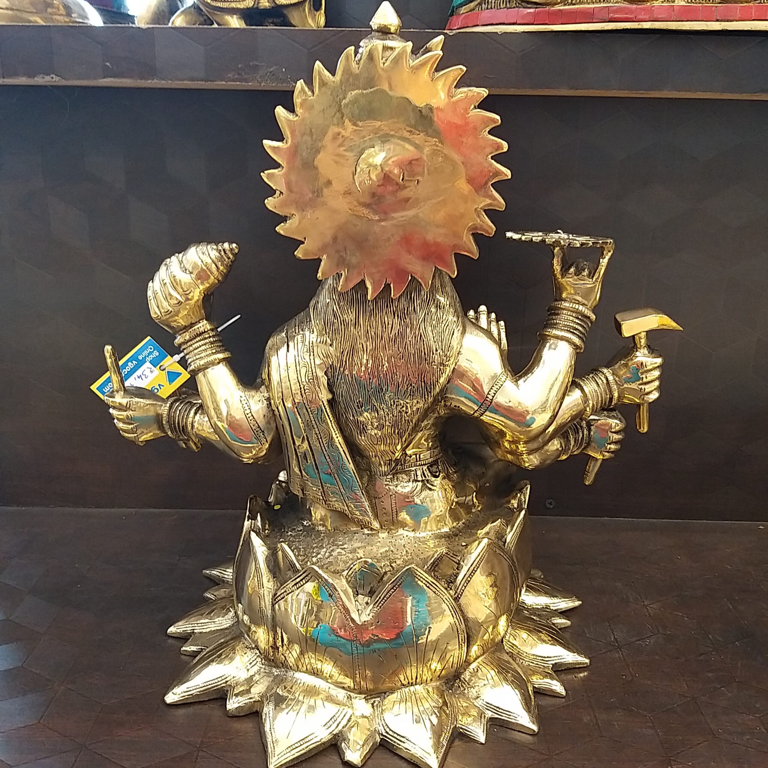 This brass Varahi goddess idol is come up with a brass classy finish and look. This is the big and decorative idol of the Vgocart. keeping brass varahi Amman statue and image of the varahi at home and worshipping her is very auspicious. She is the symbol of good health, wealth, prosperity, and eternal knowledge