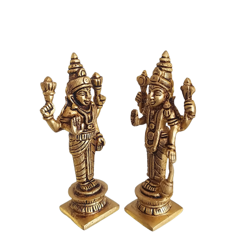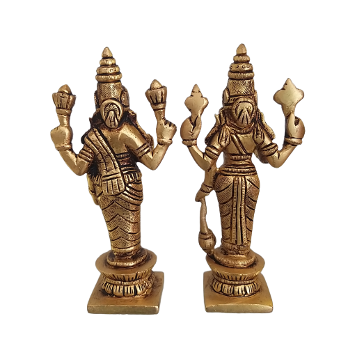 Brass Vishnu Lakshmi Statue Set- 5.2″