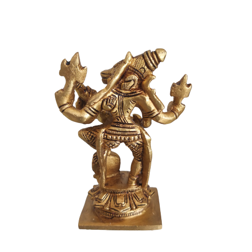 The brass statue of varaha murthi has got the wild boar head with human body and comes as the 3rd avatar in the great 10 avatar list of Lord Vishnu. This avatar of Vishnu was taken in order to save and rescue bhoomadevi out of the huge cosmic ocean who have been stolen by the demon hiranyaksha khan.