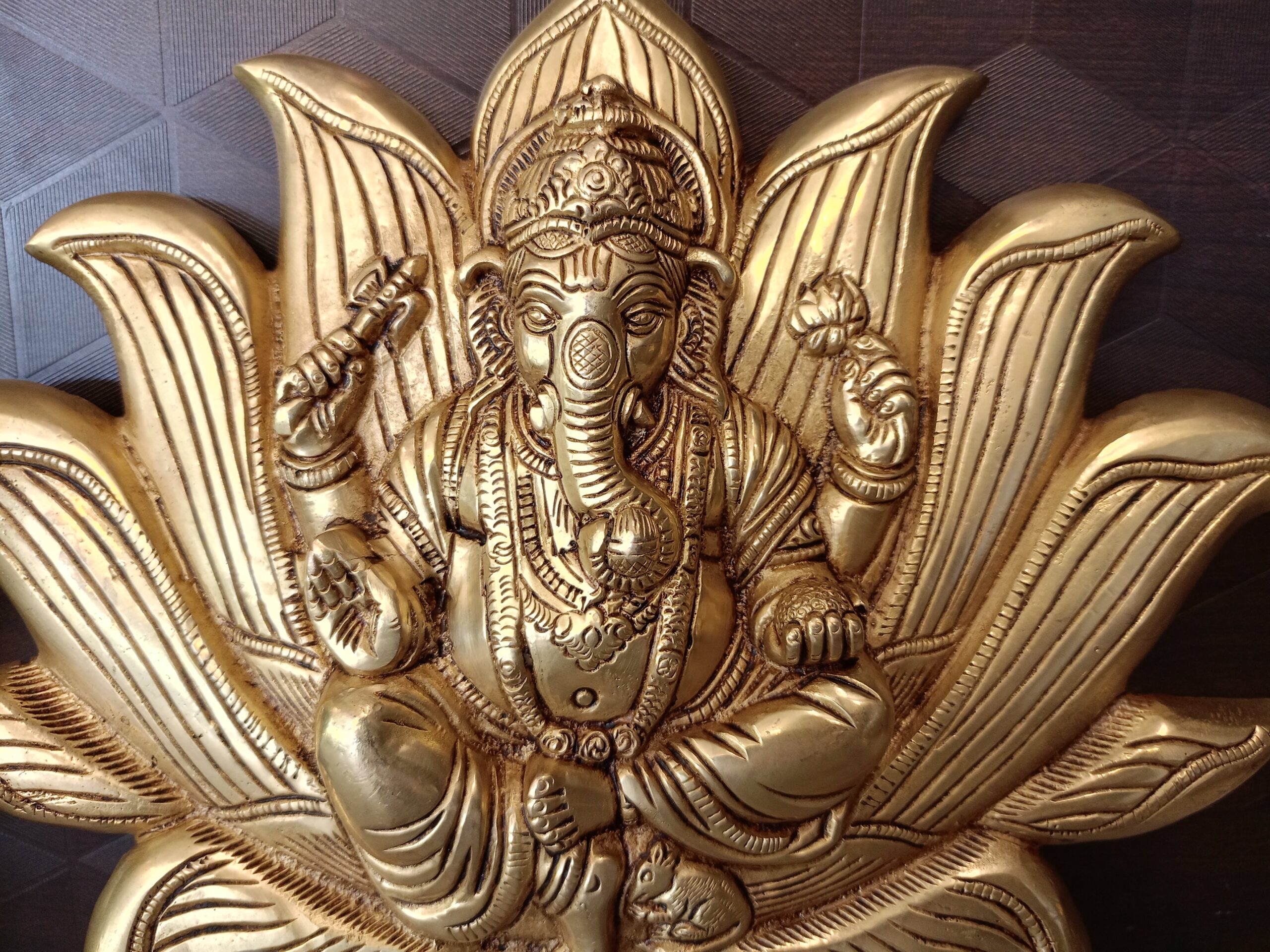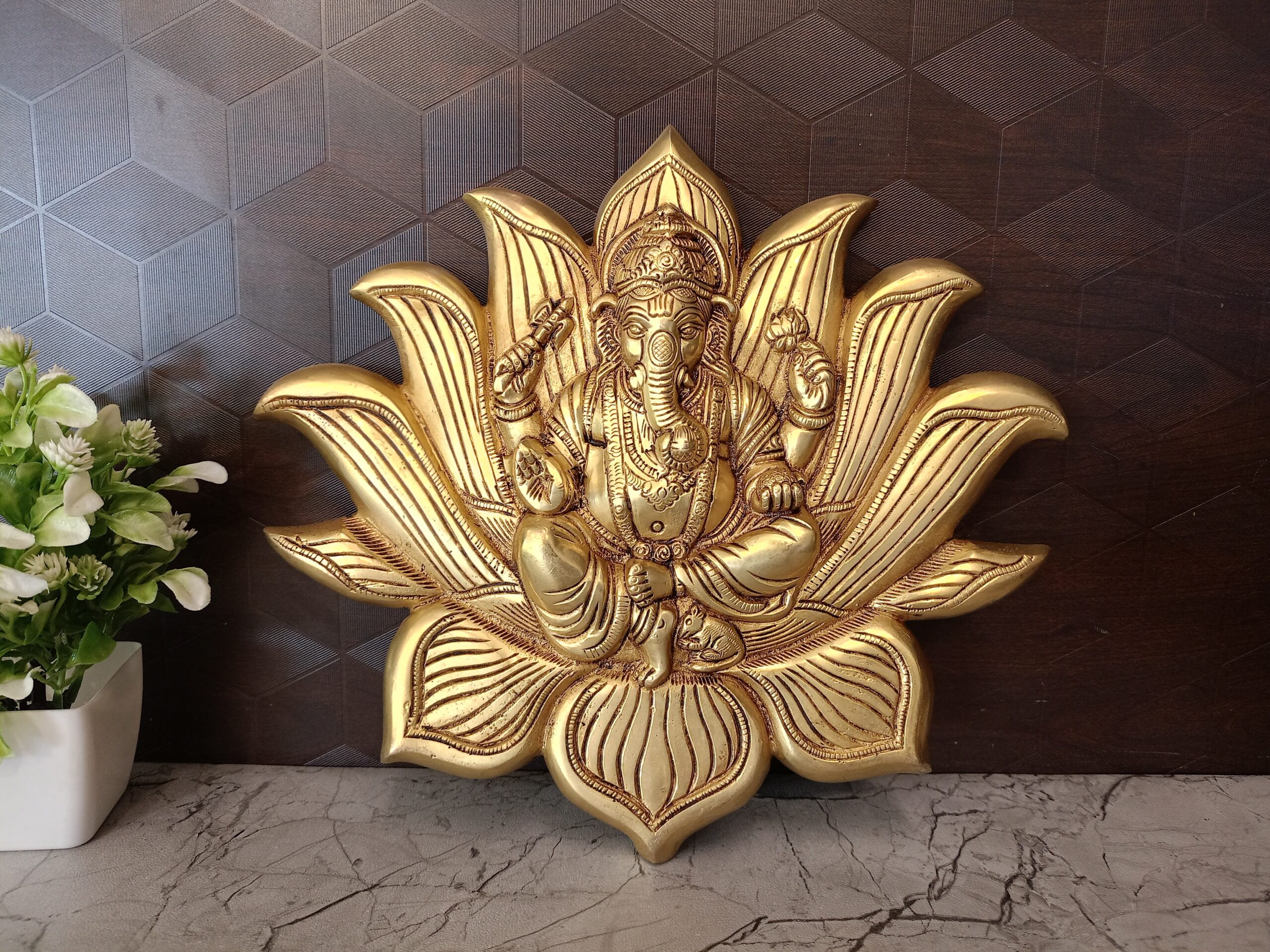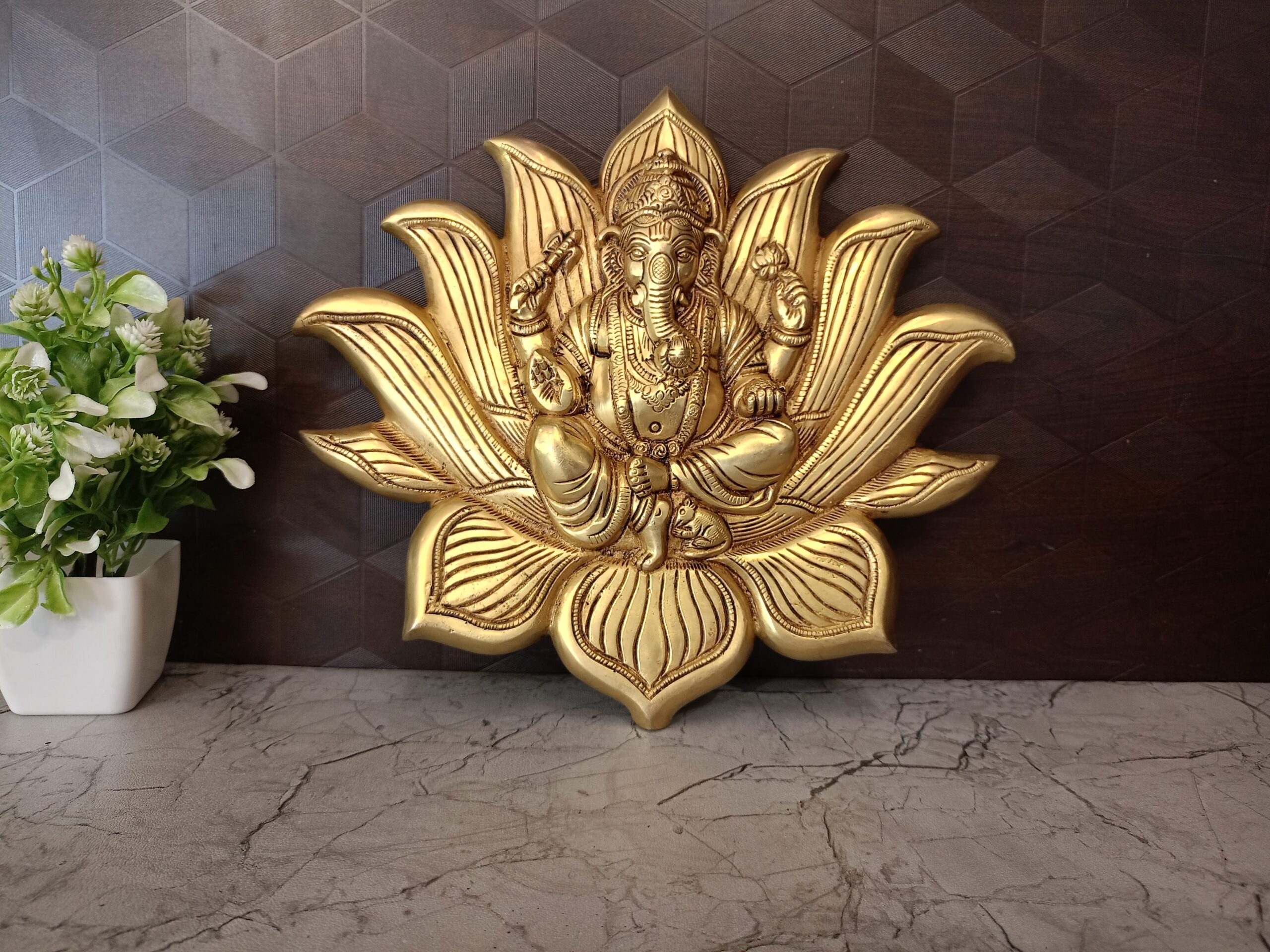 A Lotus wall mount Ganesha is a beautiful and auspicious decorative piece that combines the symbolism of Lord Ganesha with the sacred lotus flower.