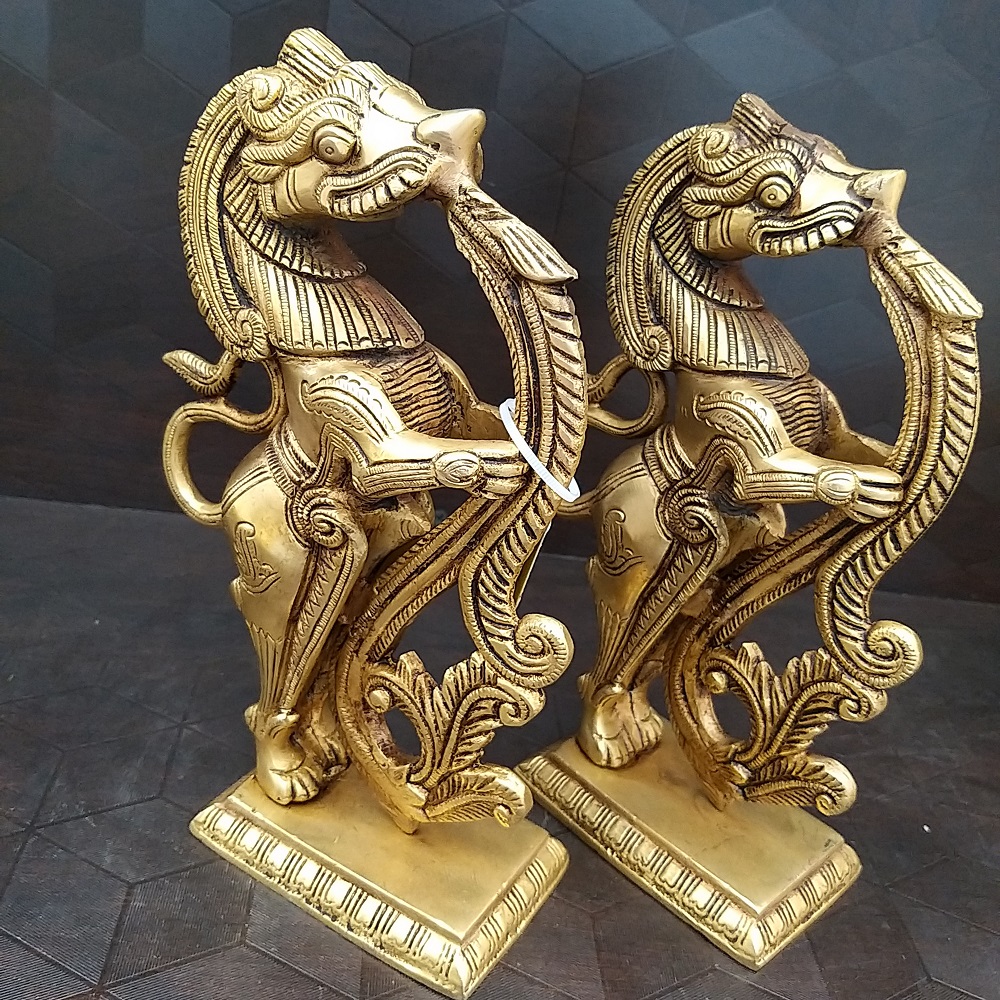 Brass Yazhi Design Pair Idol is designed with elegant finishing and it is a very good showpiece.  This showpiece is made up of brass material and it’s heavy weighed. Yali is placed with pair and gives a positive thought and it is very useful for gifting purposes also.