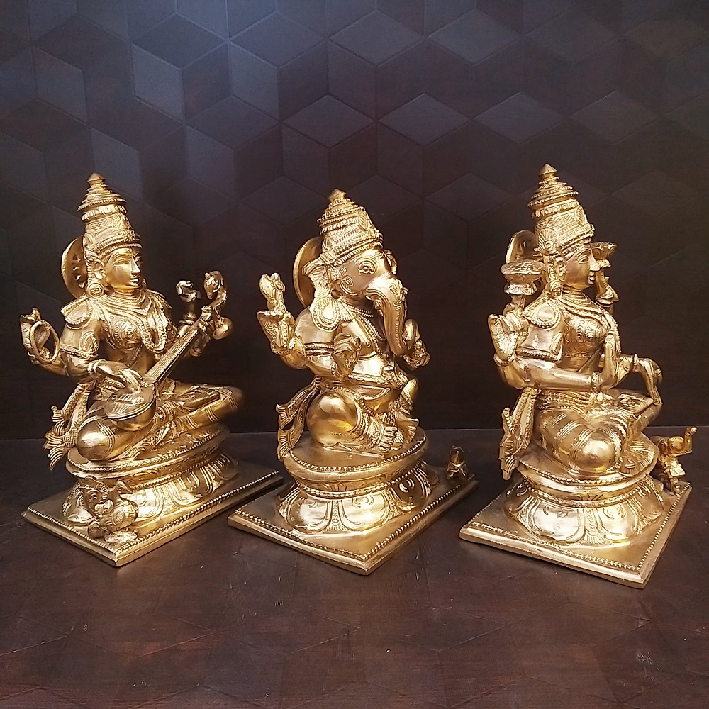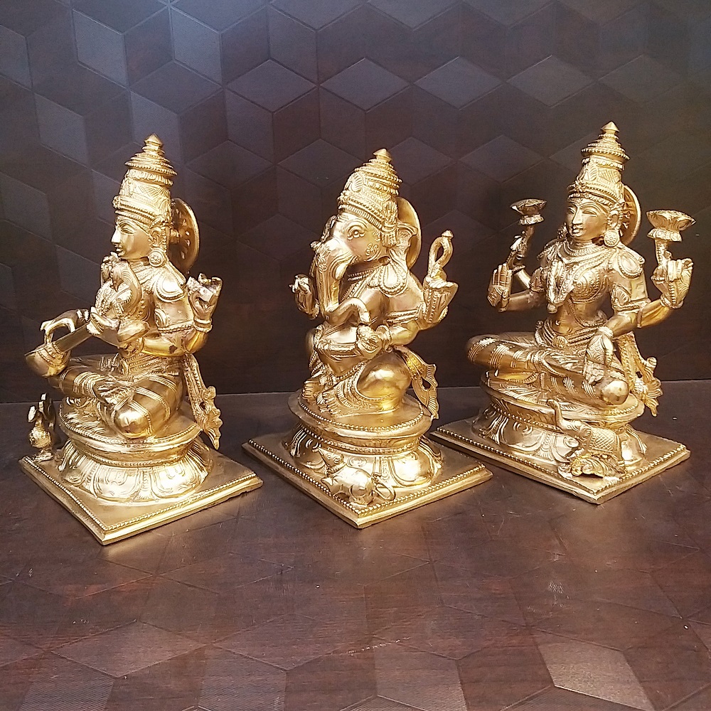 Bronze Lakshmi Ganesha And Saraswathi Set Statues- 8″