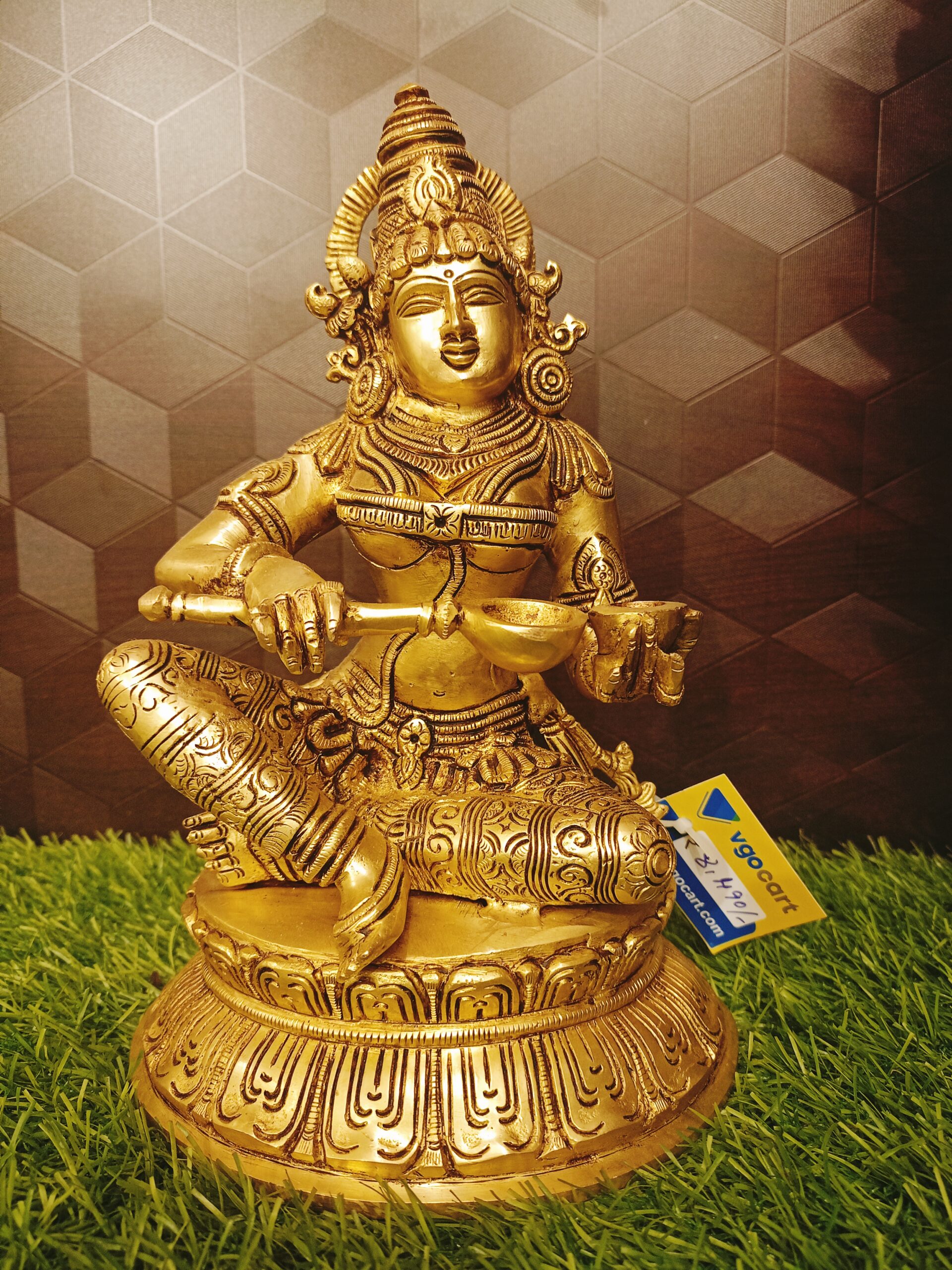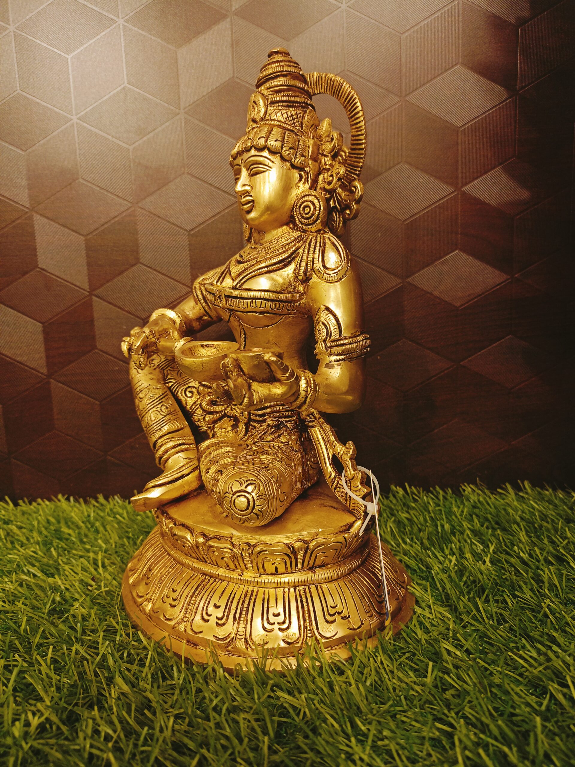 Brass Annapoorna Idol is a considered as manifestation of Parvati.Annapoorna is the considered as the Goddess of food and nourishment in Hinduism.Word Annapurna is derived from Sanskrit word Anna means food and nourishment Purna means full,complete and perfect.Akshaya Tritiya is considered as birthdate of Annapurna