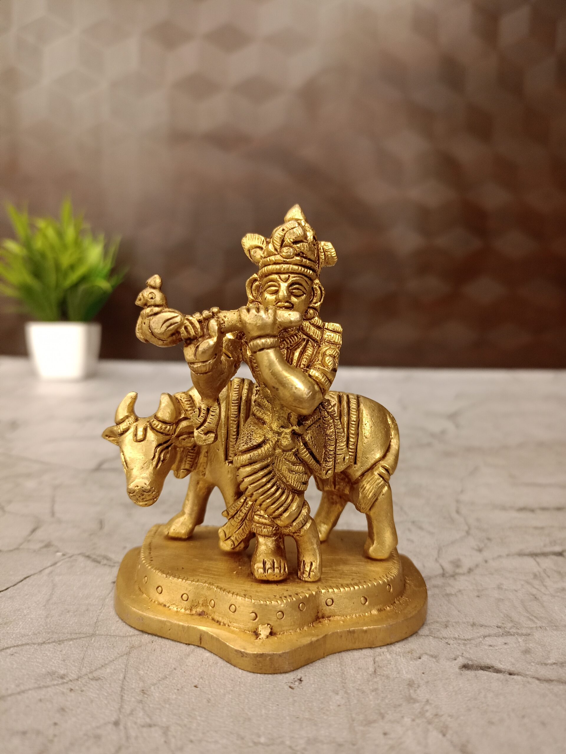 Buy Brass Cow Krishna Statue 4″