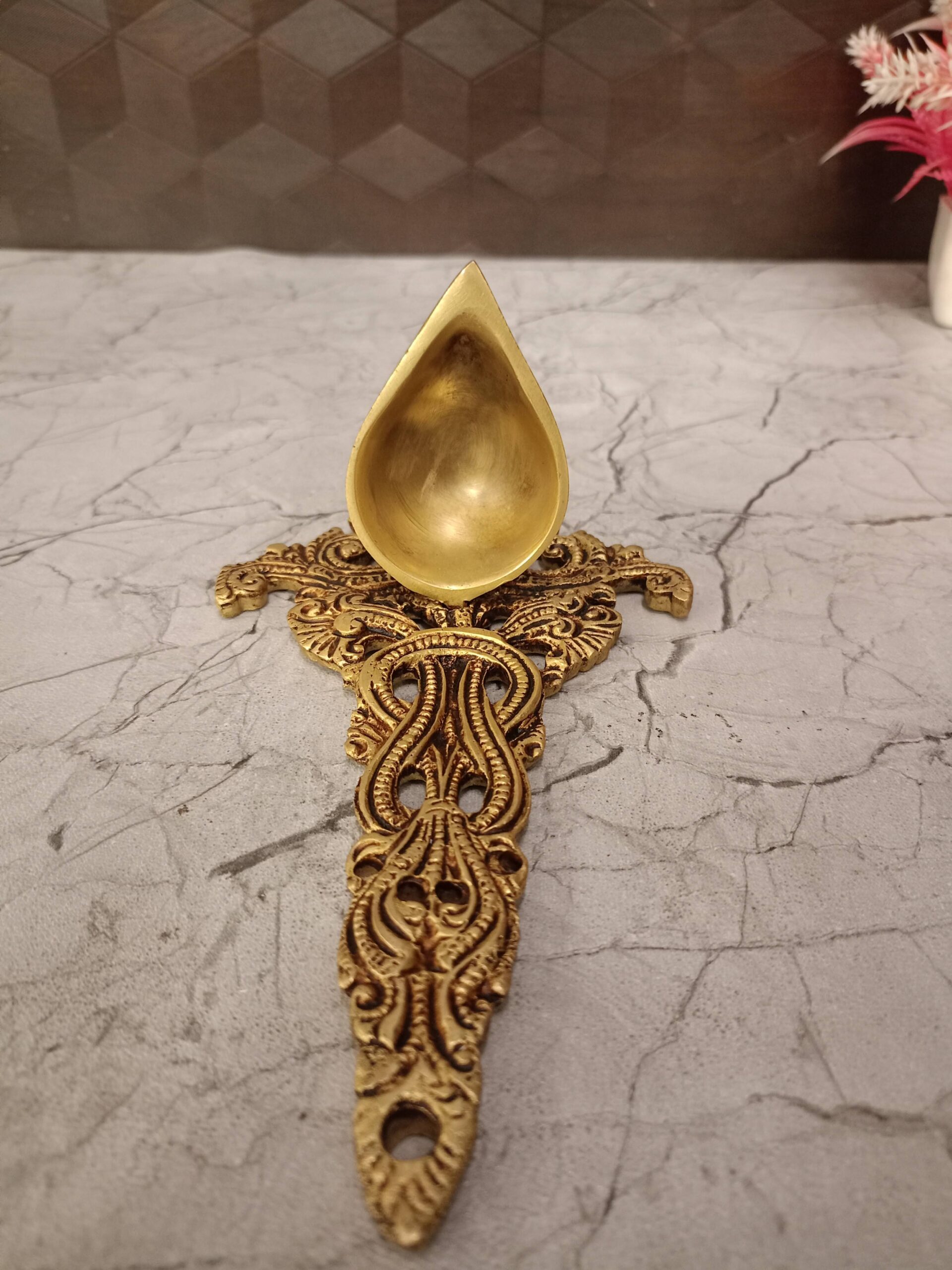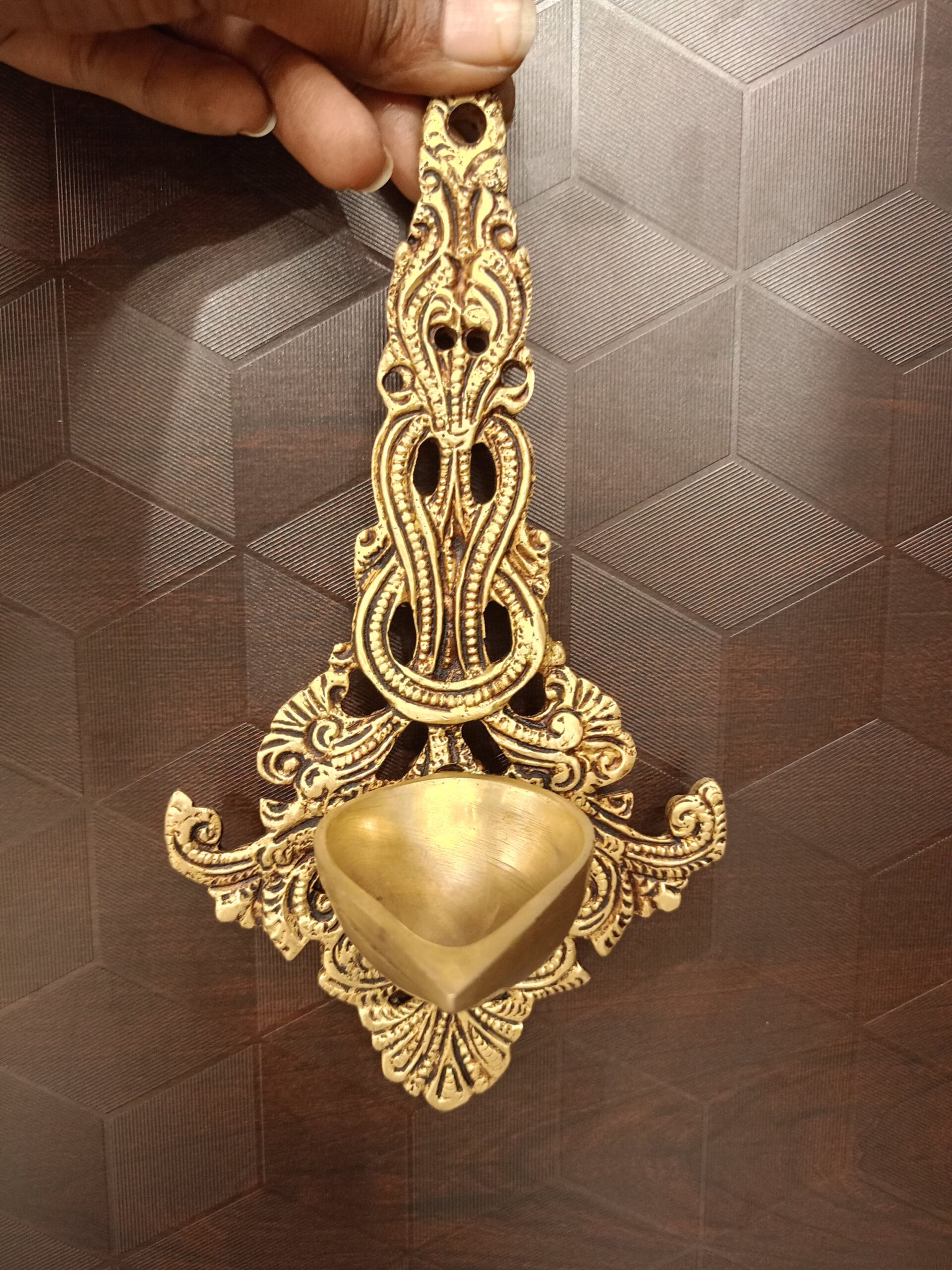 The brass Diya Designer Wall Mount Is very Unique design and handcraft idol.