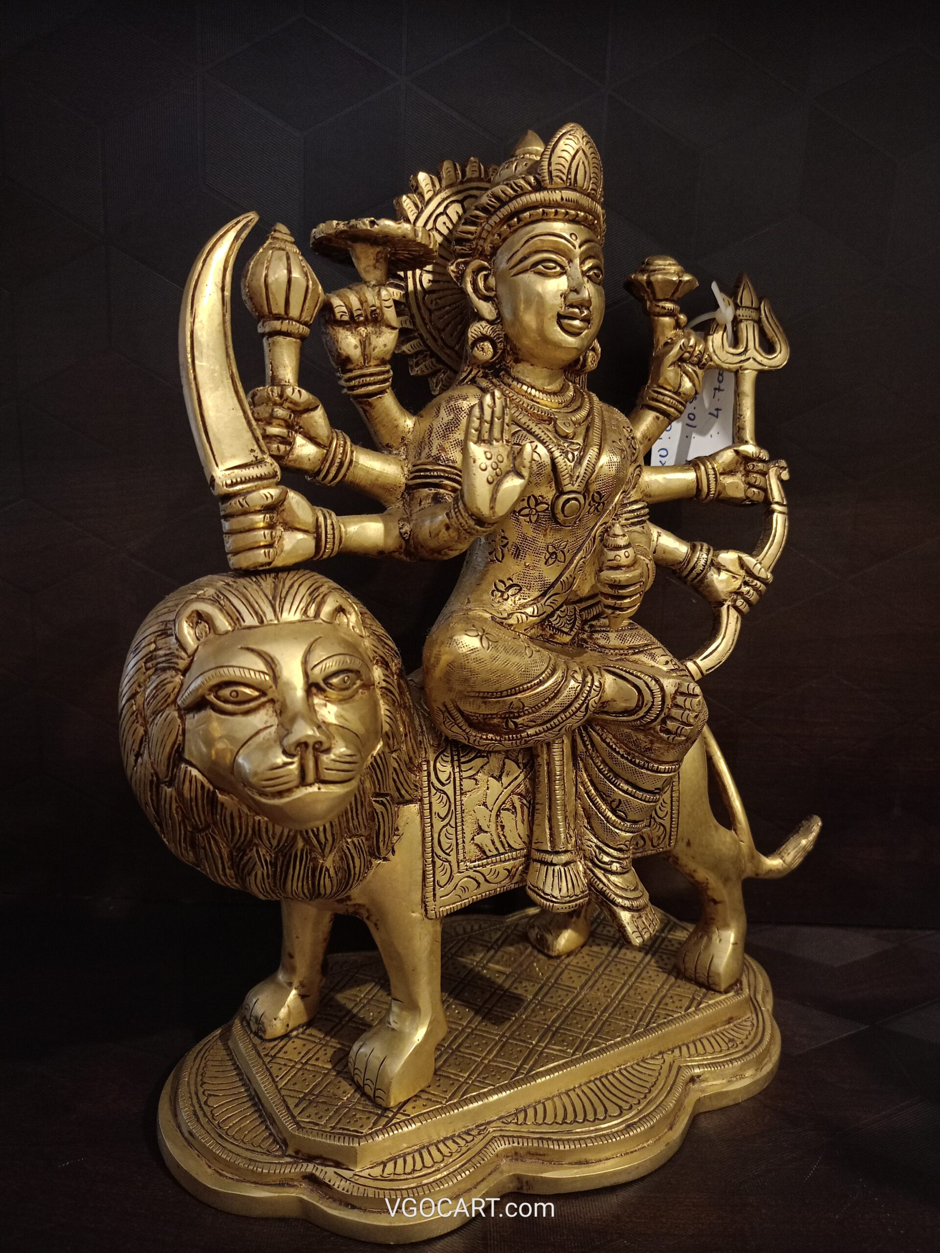 Brass Durga Amman Idol is Beautifully handcrafted with 8 hands holding weapons and Sitting on Lion. Brass Durgai Amman can make your pooja room unique ,Gifts to all ocassions such as wedding gifts,House warming ceremony,gifts to Our Loved ones.