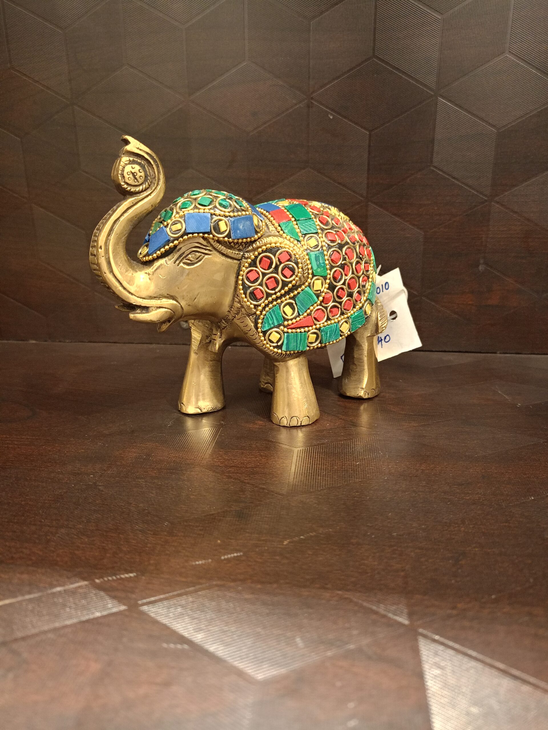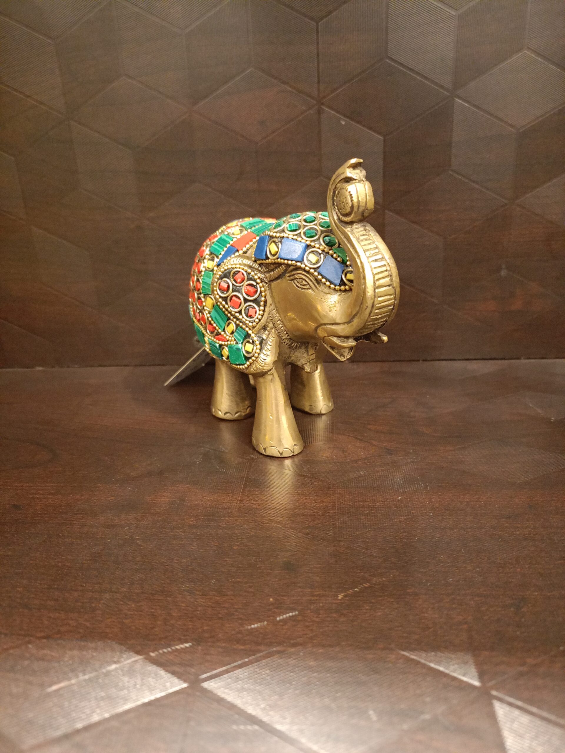 Brass Elephant Statue Stone finish Large 4″