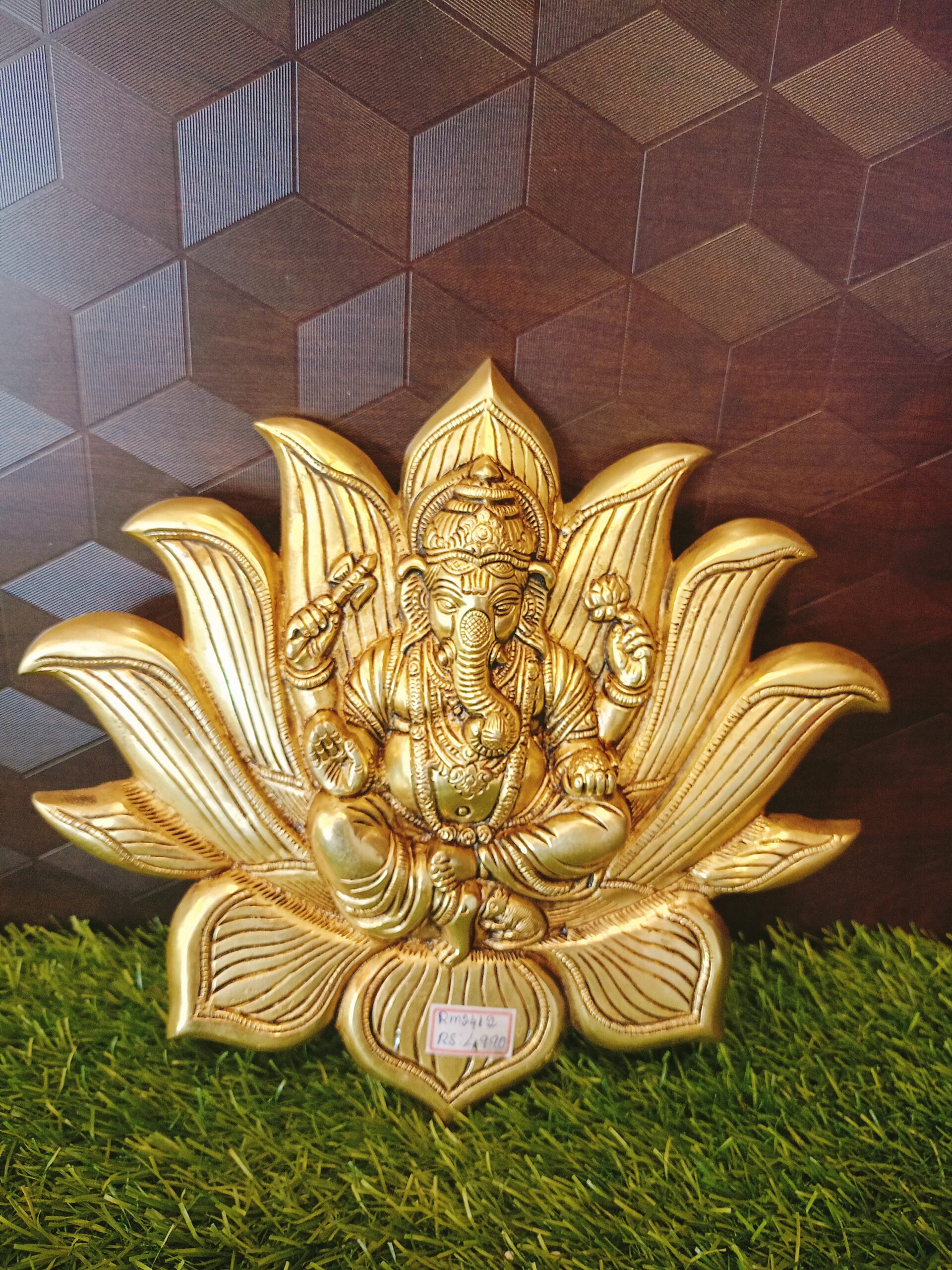 Brass Ganesha Lotus Wall Mount 9.5″