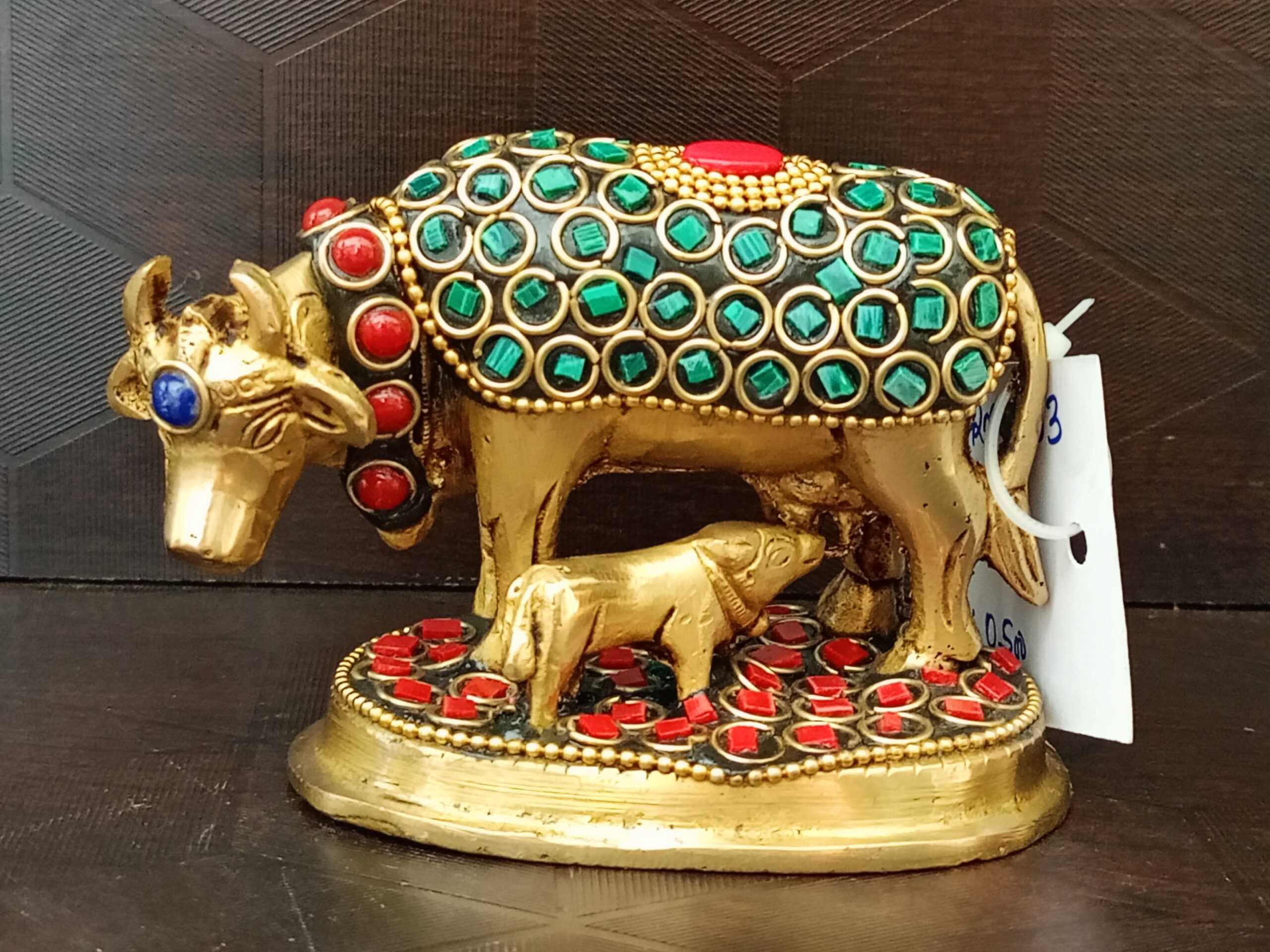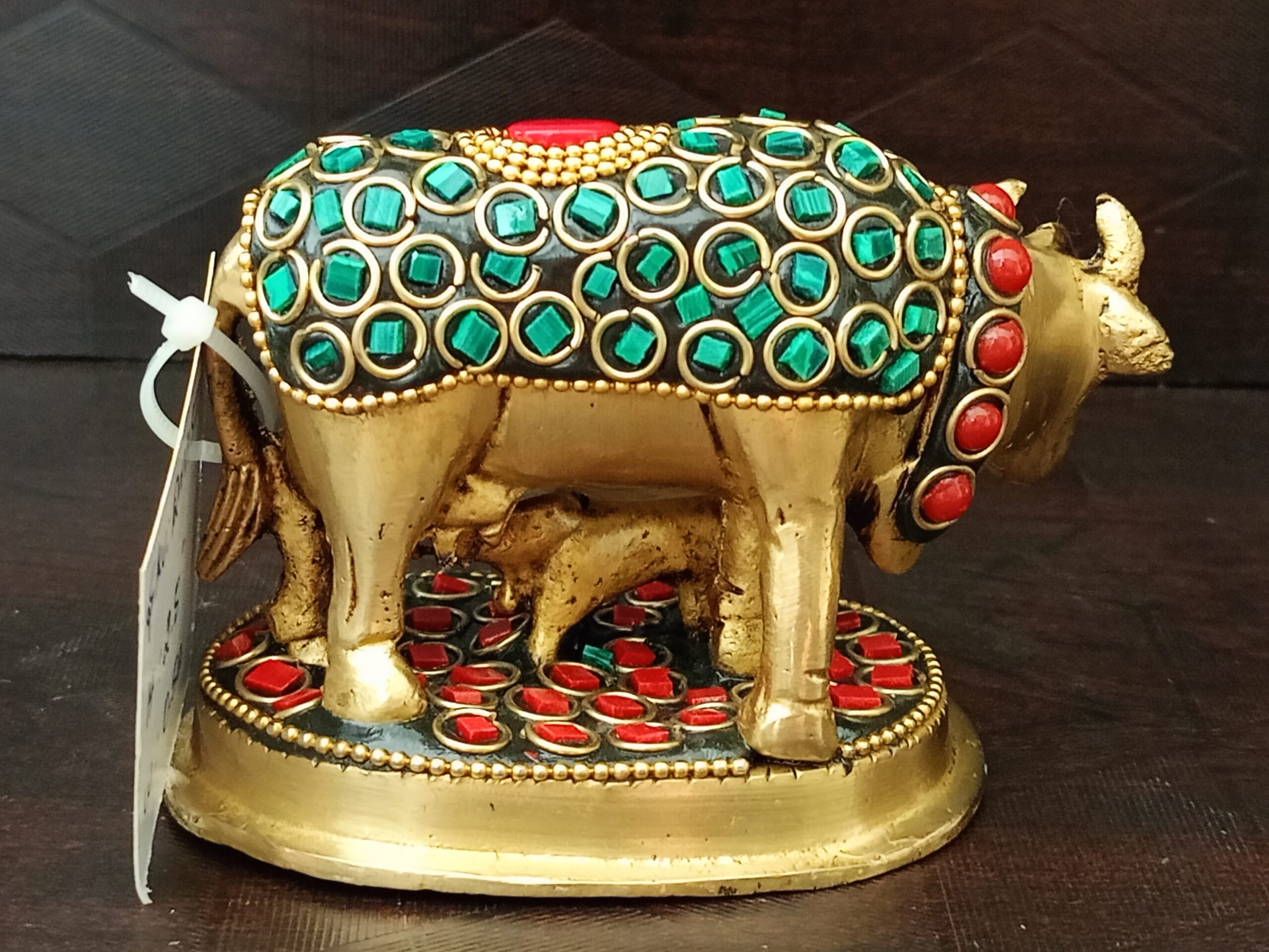 Brass Gomatha Multi stone finish is fine fine handcrafted brass idol with Multi stone finish make the idol unique.Gomatha can be used for for Regular Pooja and it can gifted to our loved ones to anu ocassions.