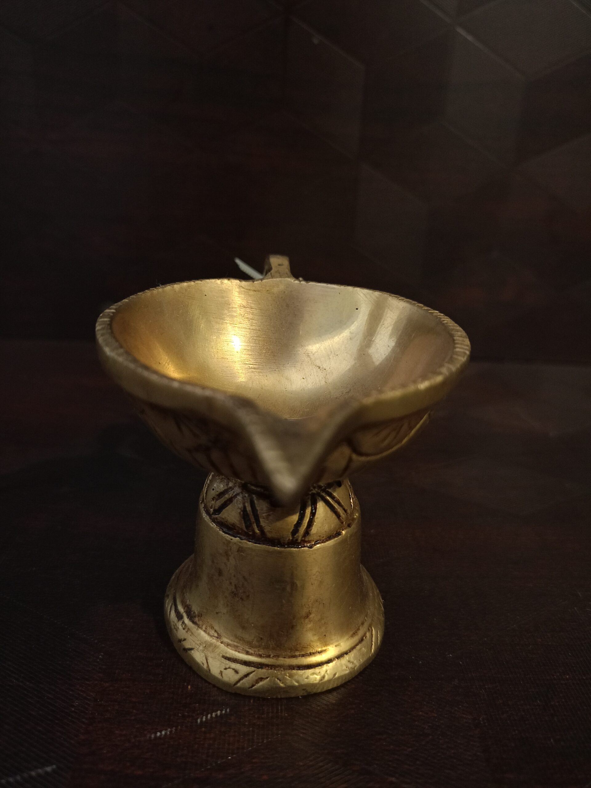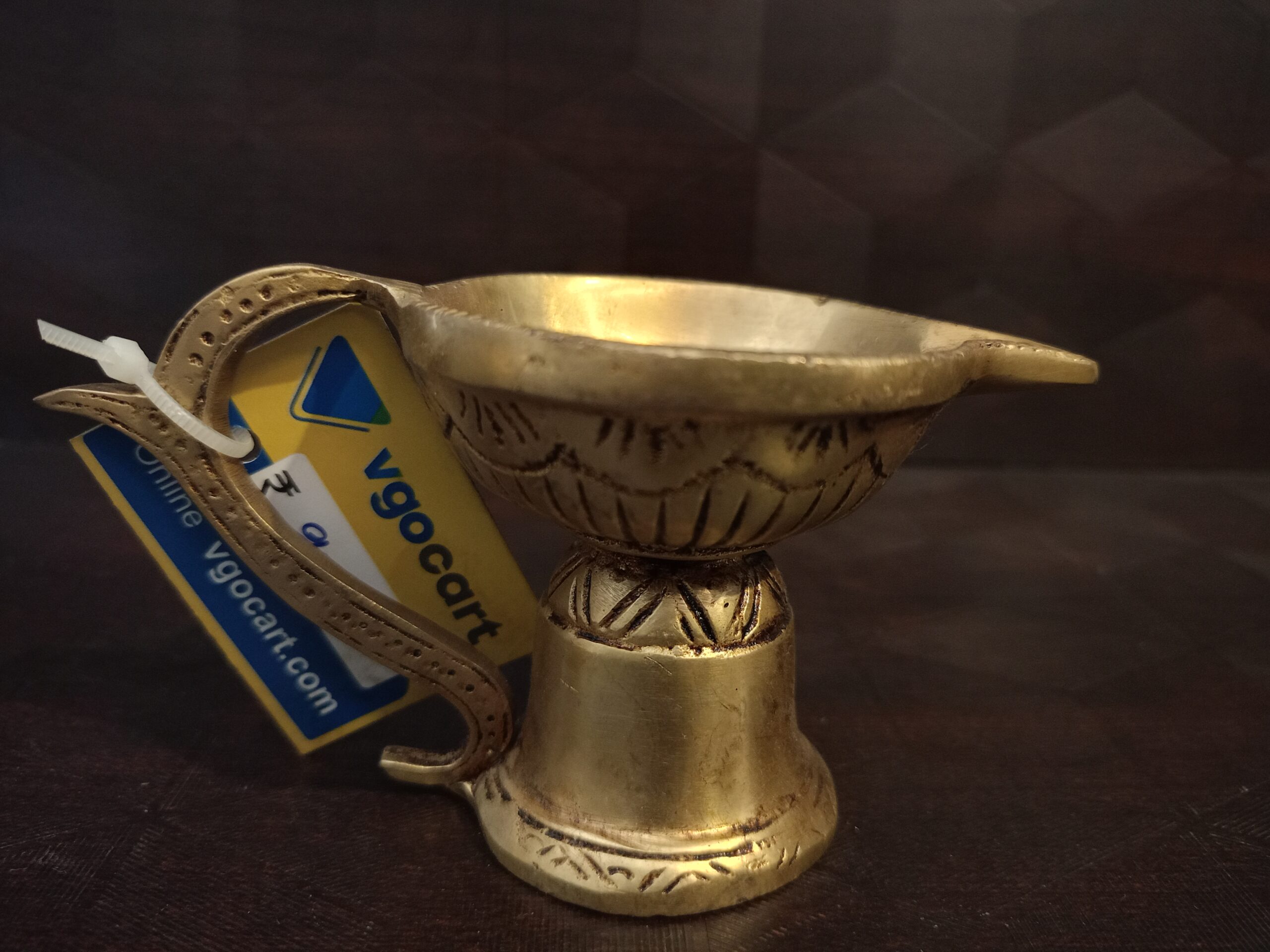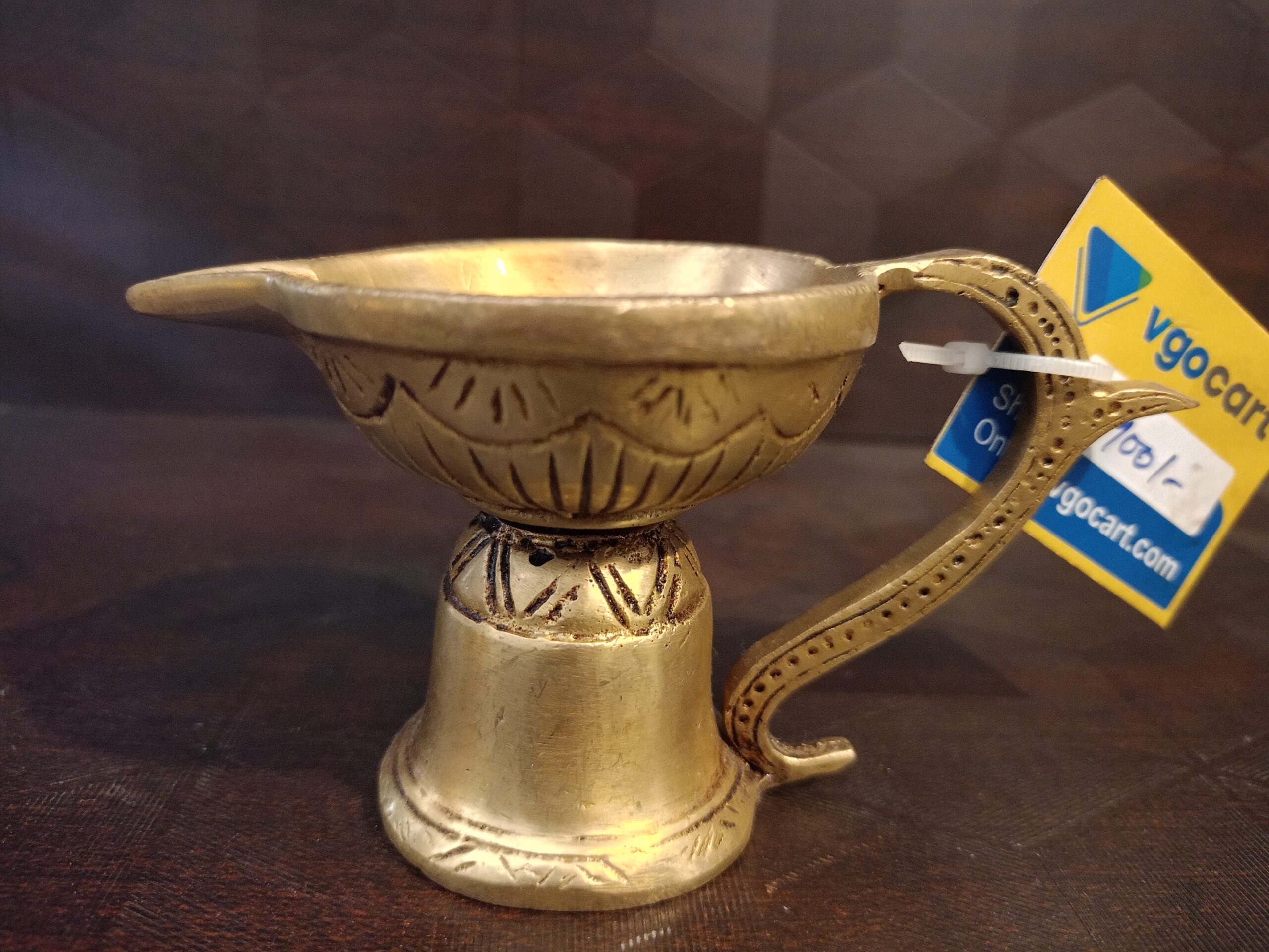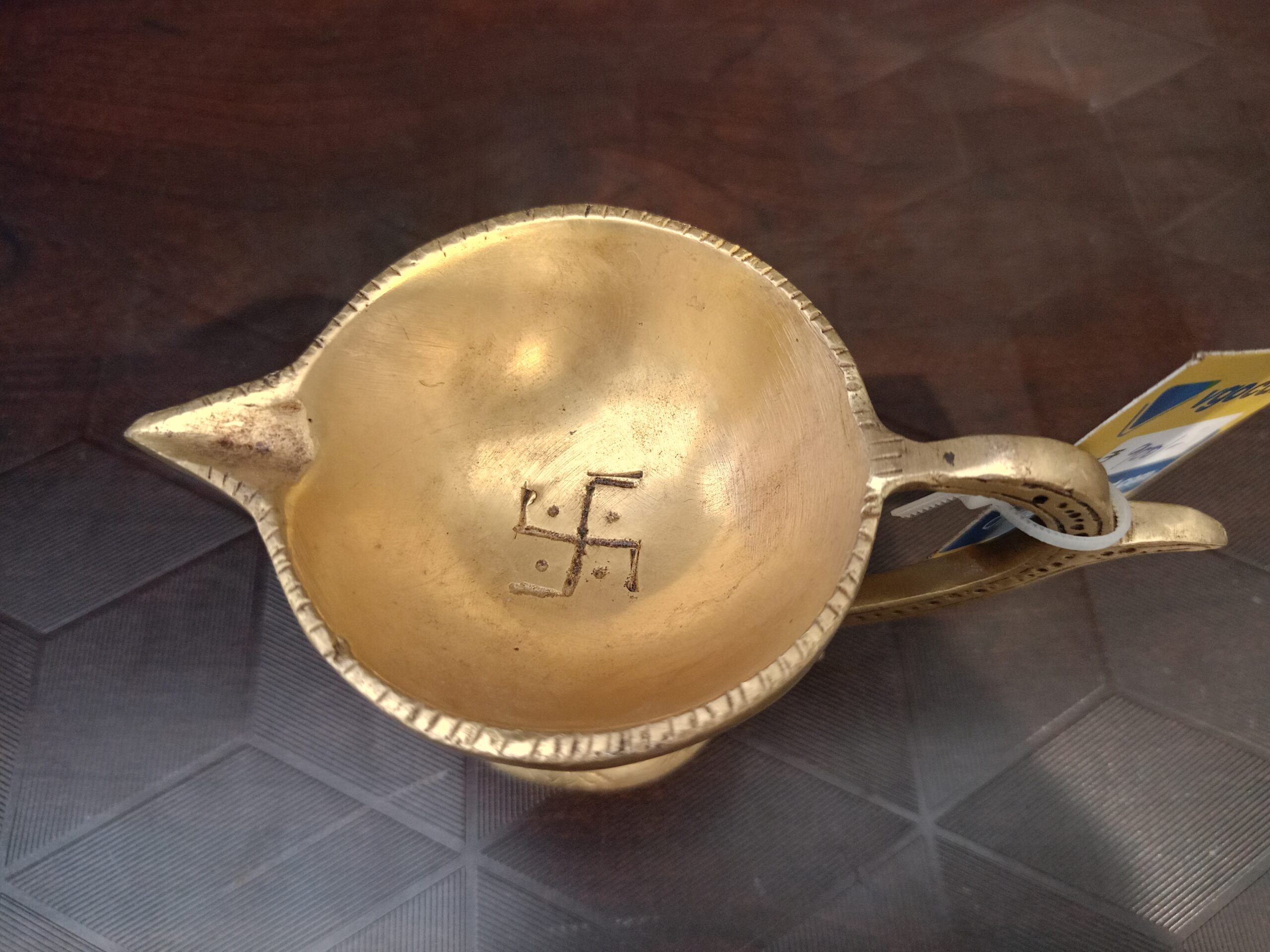 Brass handcraved diya with handle is fine handcraved diya with swastik symbol at the center of the diya makes diya unique and divine,this diya can be used at home pooja room and it can be gifted to our loved ones ass a gift to any occassions.
