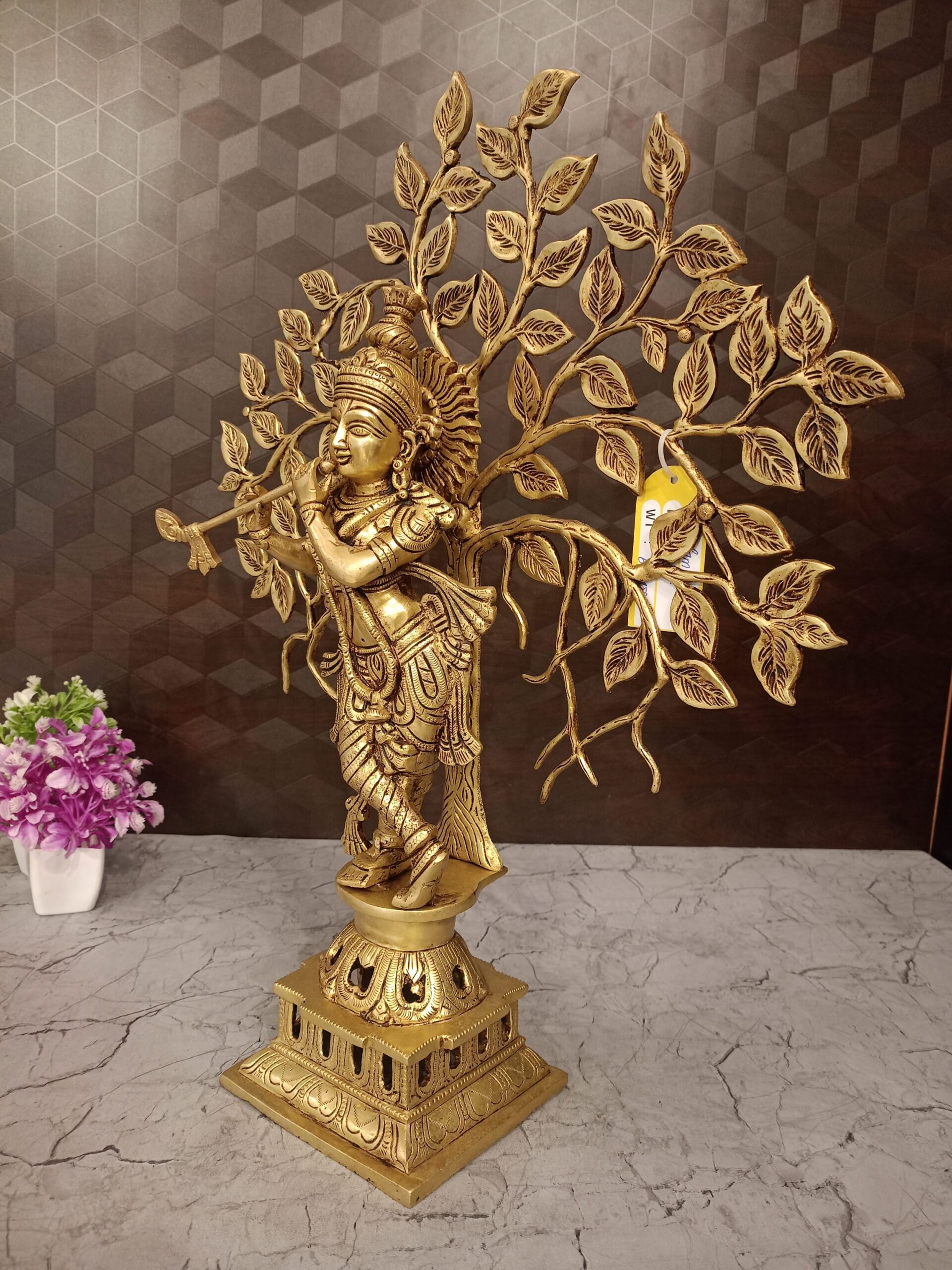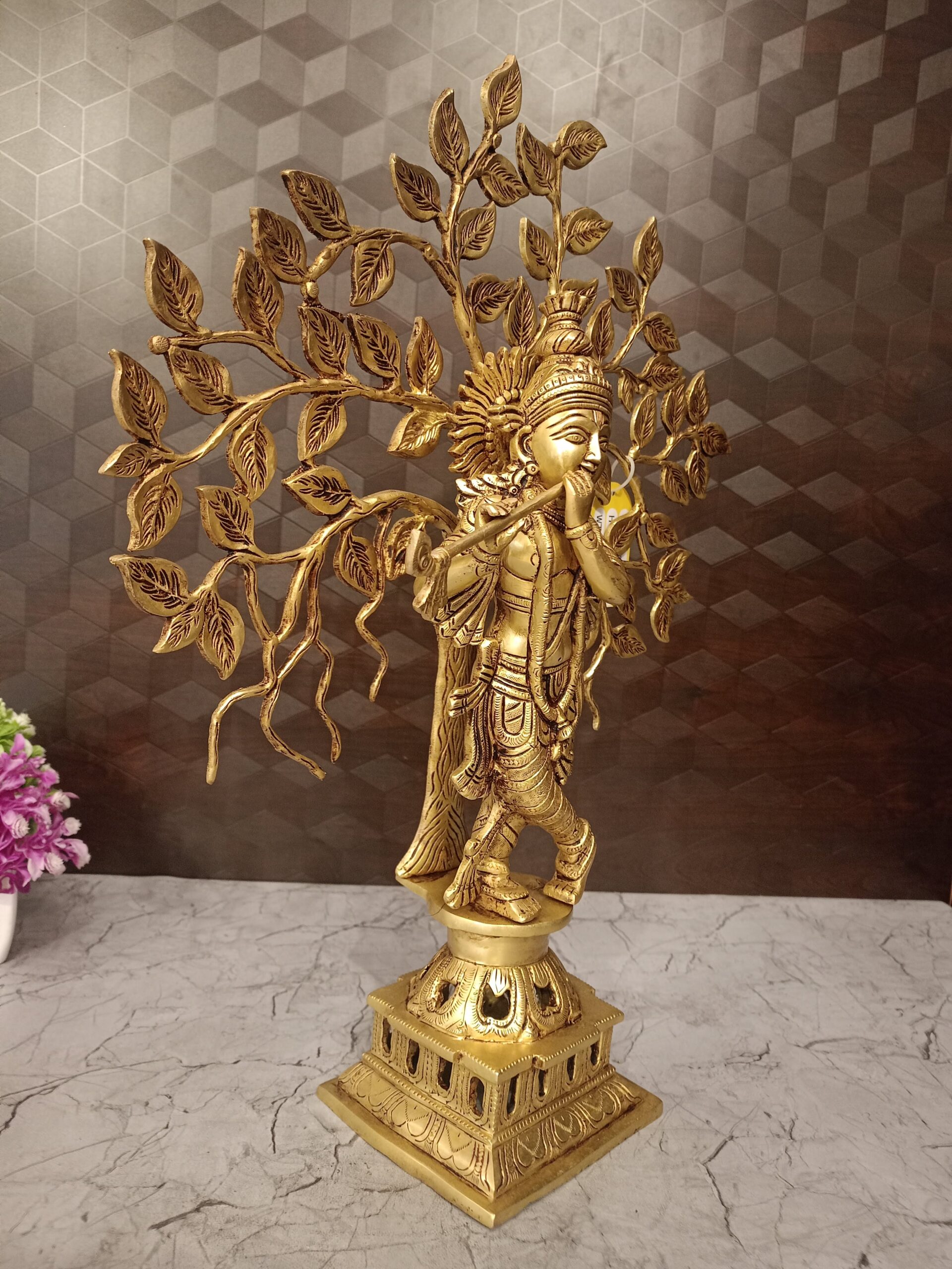 Buy Brass Krishna With Tree Statue For Pooja & Homedecor