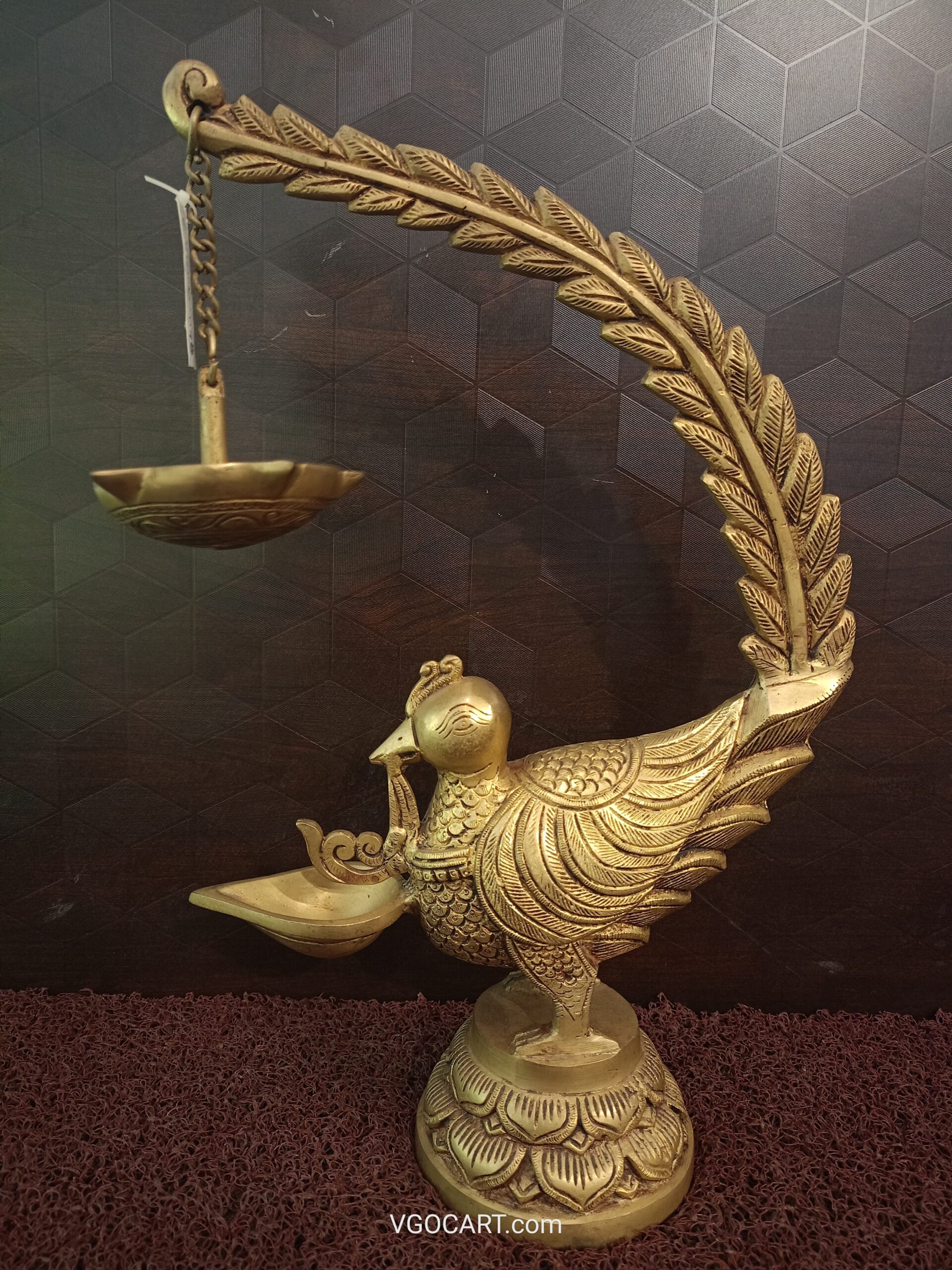 Brass Peacock Designer Single face diya Hanging Five Face Small Diya is an artistic work exposing the statue of Vgocart. It has a perfect size and design that will beautifully grab the attention of everyone. Some people do their home altar with diya’s. Everyone started by lit a lamp in their home or temple.