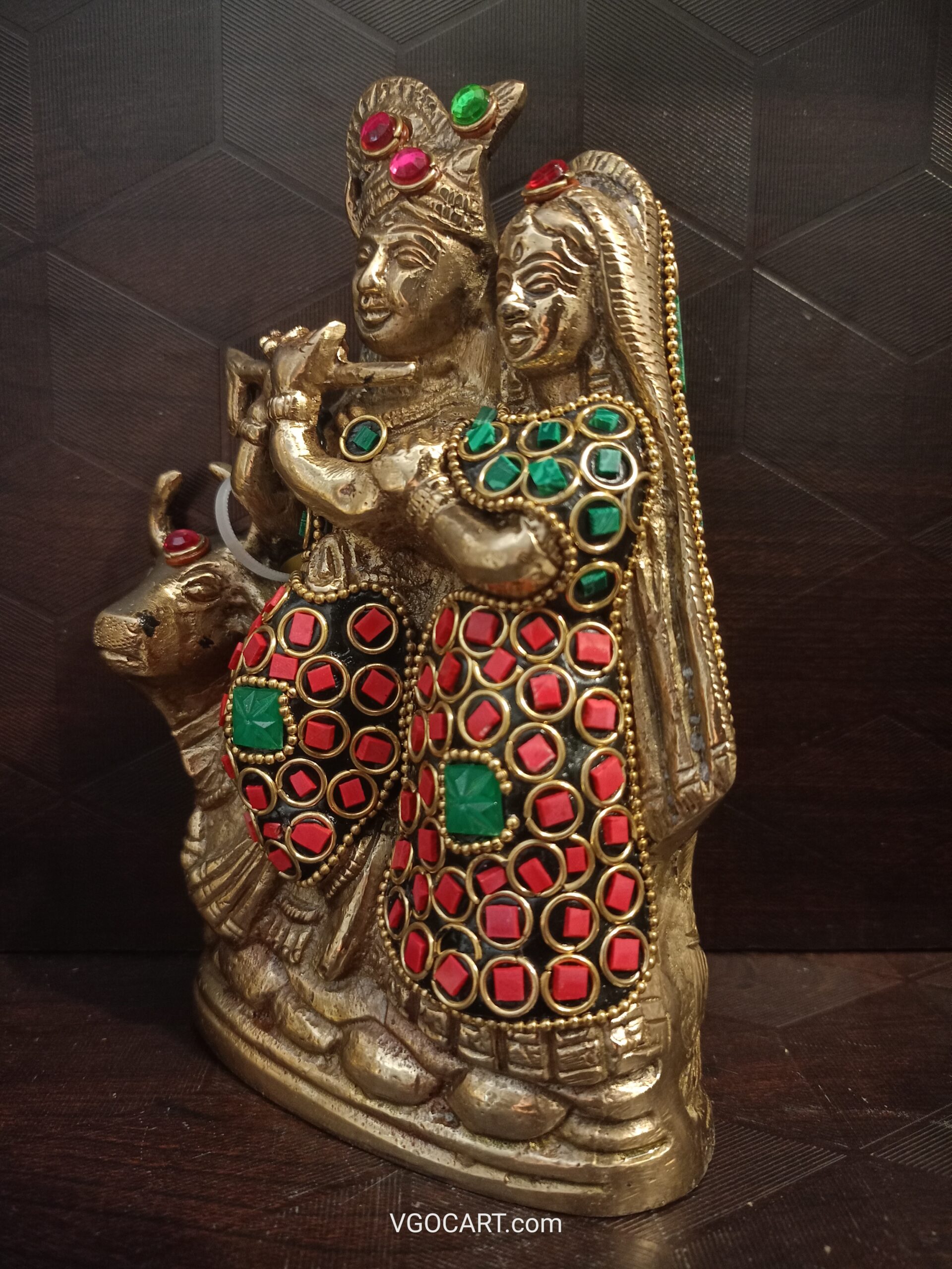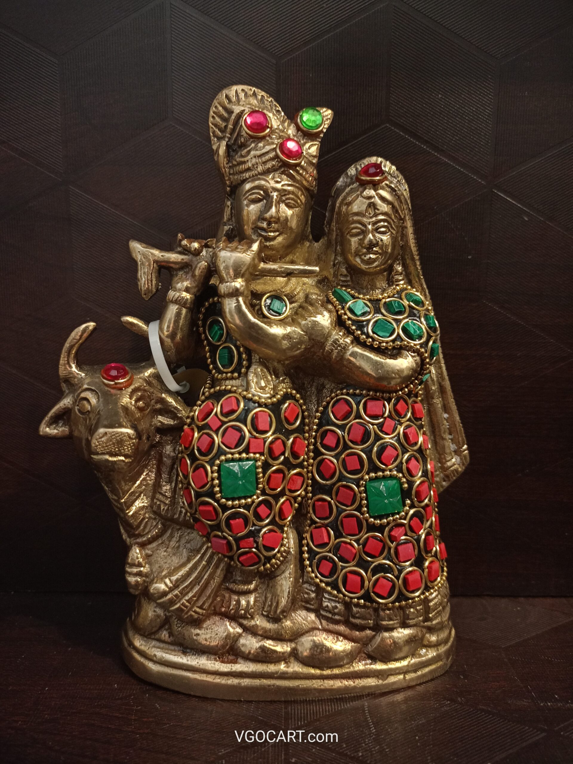Brass Radha Krishna With Cow Multicolour Finish 6.5″