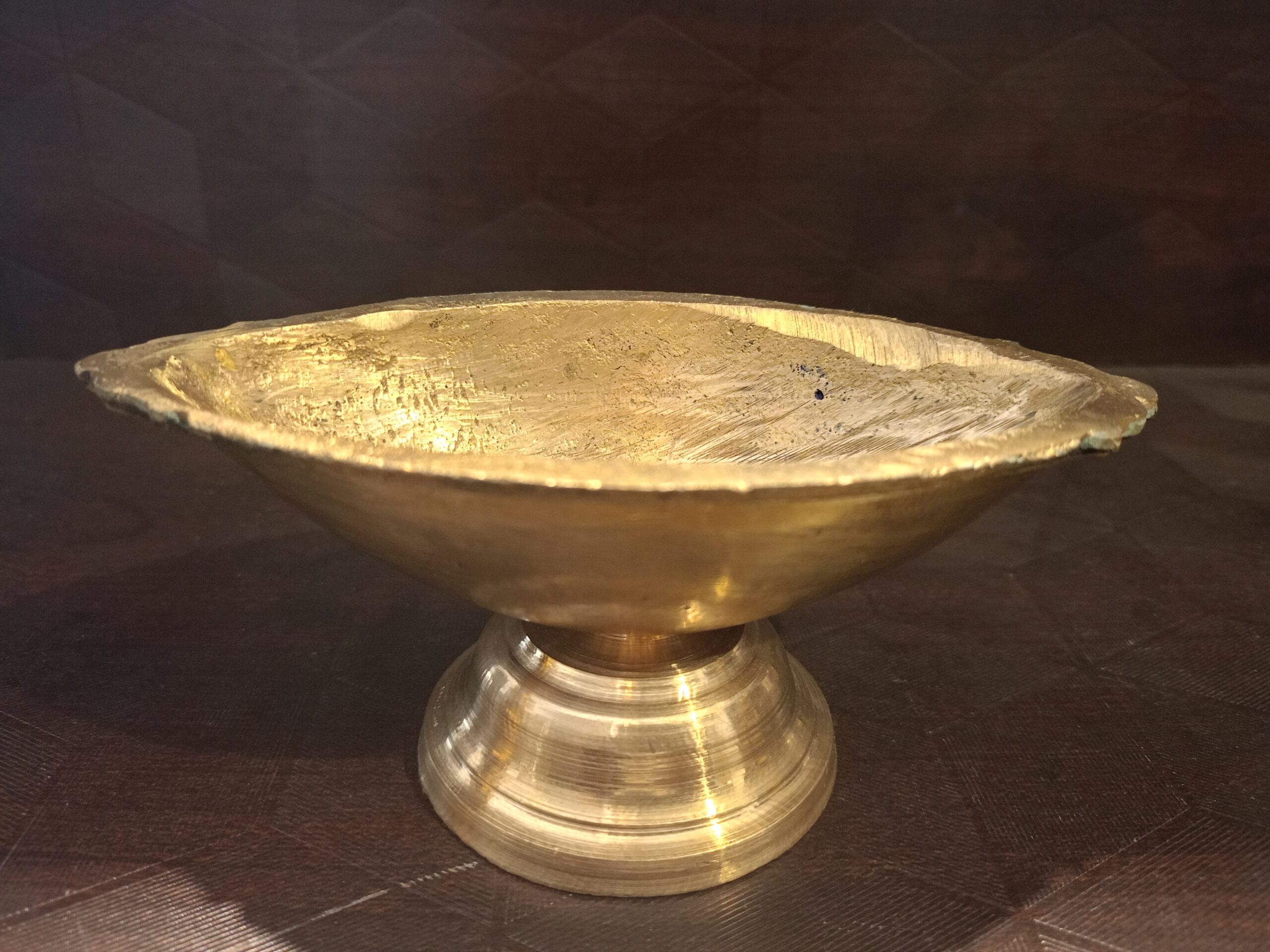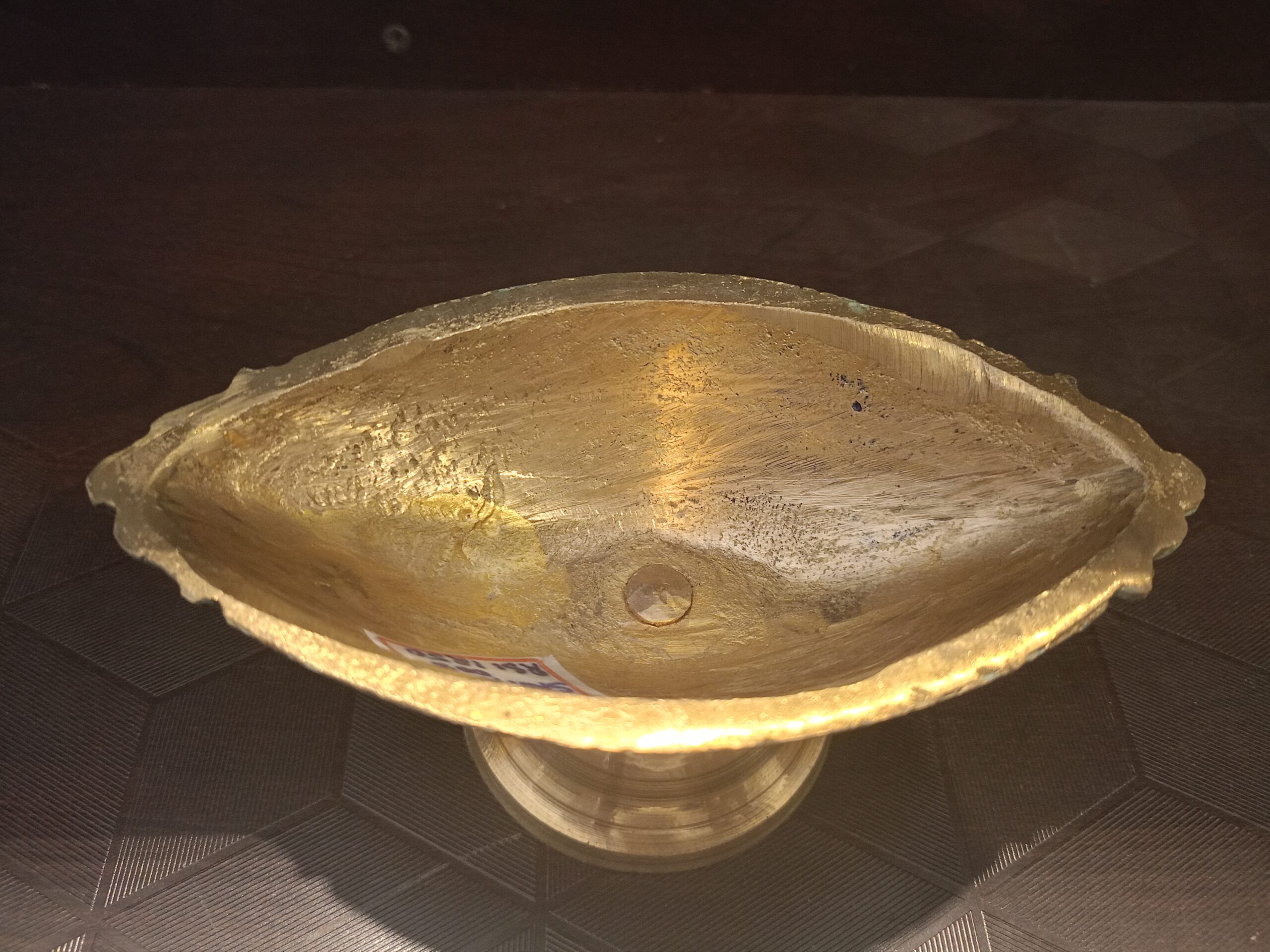 Brass small Vibhuti matal is finehandcraft of brass and with a sturdy pedestal, is used to preserve the blessings of Lord Shiva in the form of vibhuti. A boat-shaped container holds a considerable amount of vibhuti. It is a multifunctional jar that can hold saffron or turmeric for ritual purposes.it can be great gift to shiva Devotees