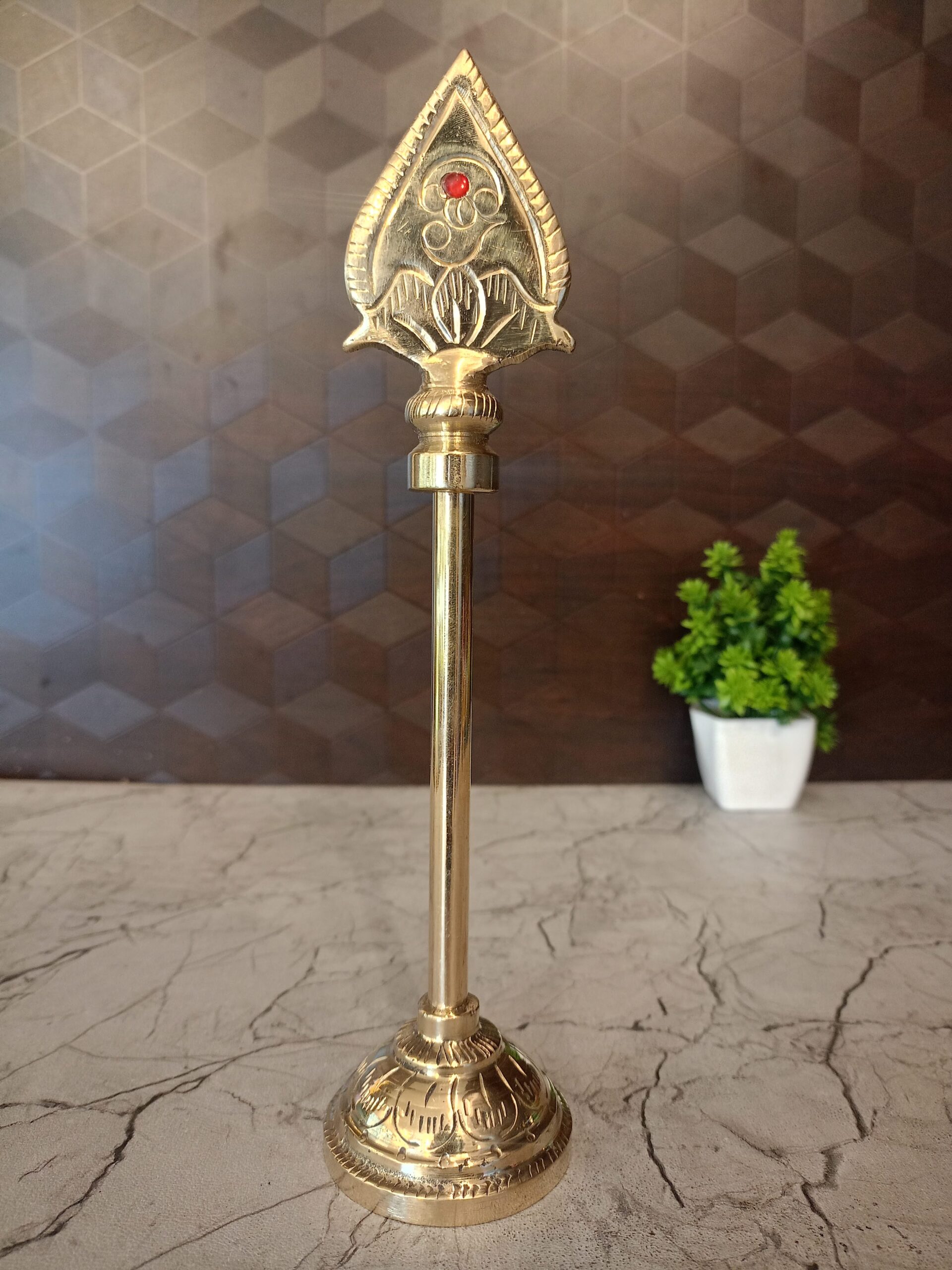 Symbol of Lord Murugan: The brass vel is most strongly associated with Lord Murugan (also known as Karthikeya or Skanda), the Hindu god of war and victory. It’s his divine weapon, symbolizing power, protection, and the destruction of evil. Murugan is often depicted carrying the vel, and it’s a central object of worship in temples dedicated to him. The vel represents divine power overcoming ignorance and negativity.