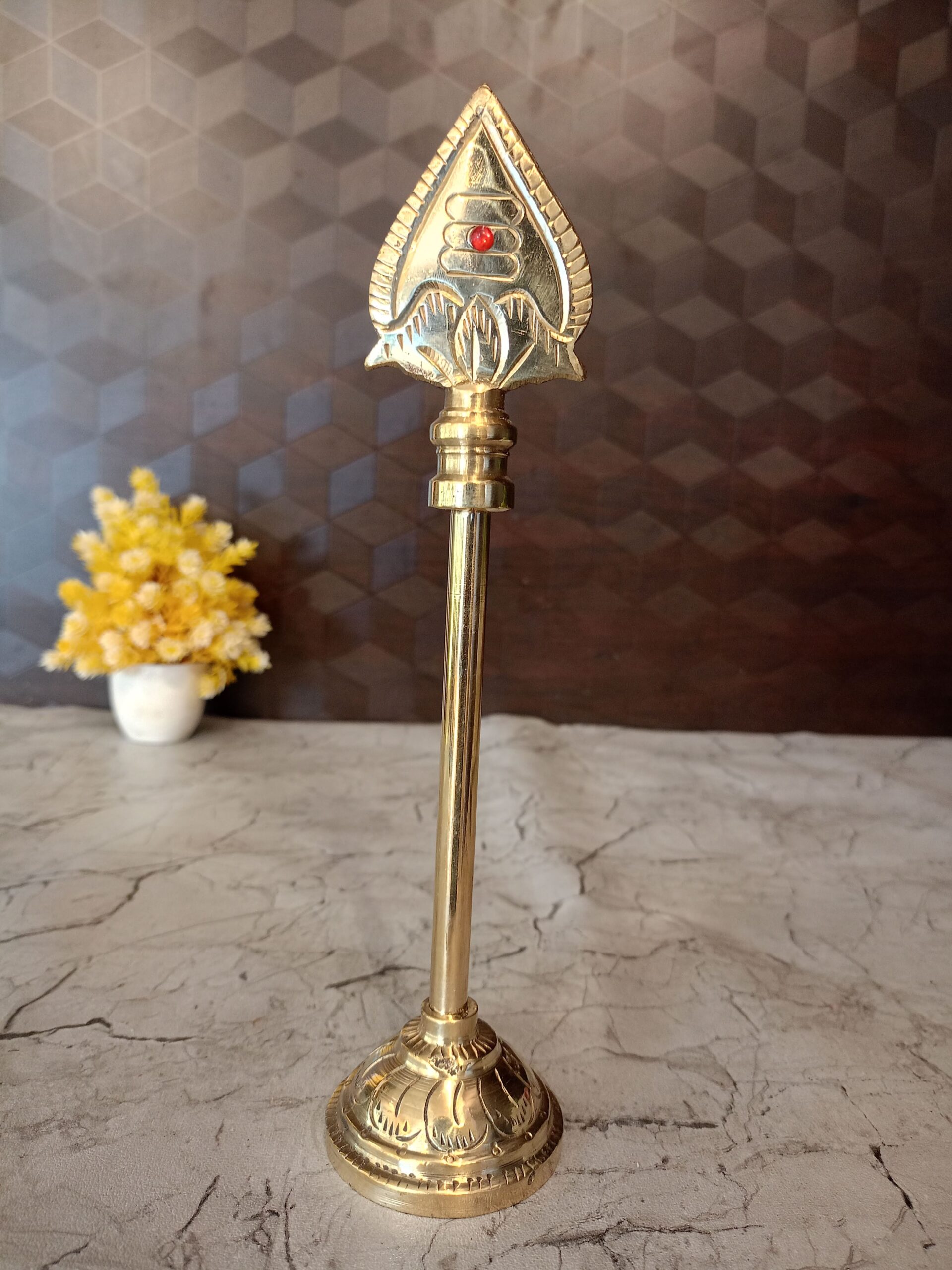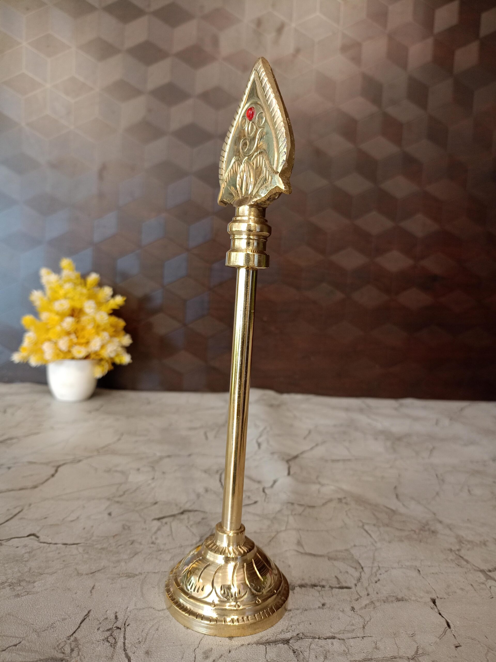 Brass Murugan Vel is a divine spear of Lord Murugan. The divine Vel is a weapon which is gifted by goddess Parvati the mother of Lord Muruga as an embodiment of her powers (Shakthi) to destroy all evil and the demon Soorabathman.