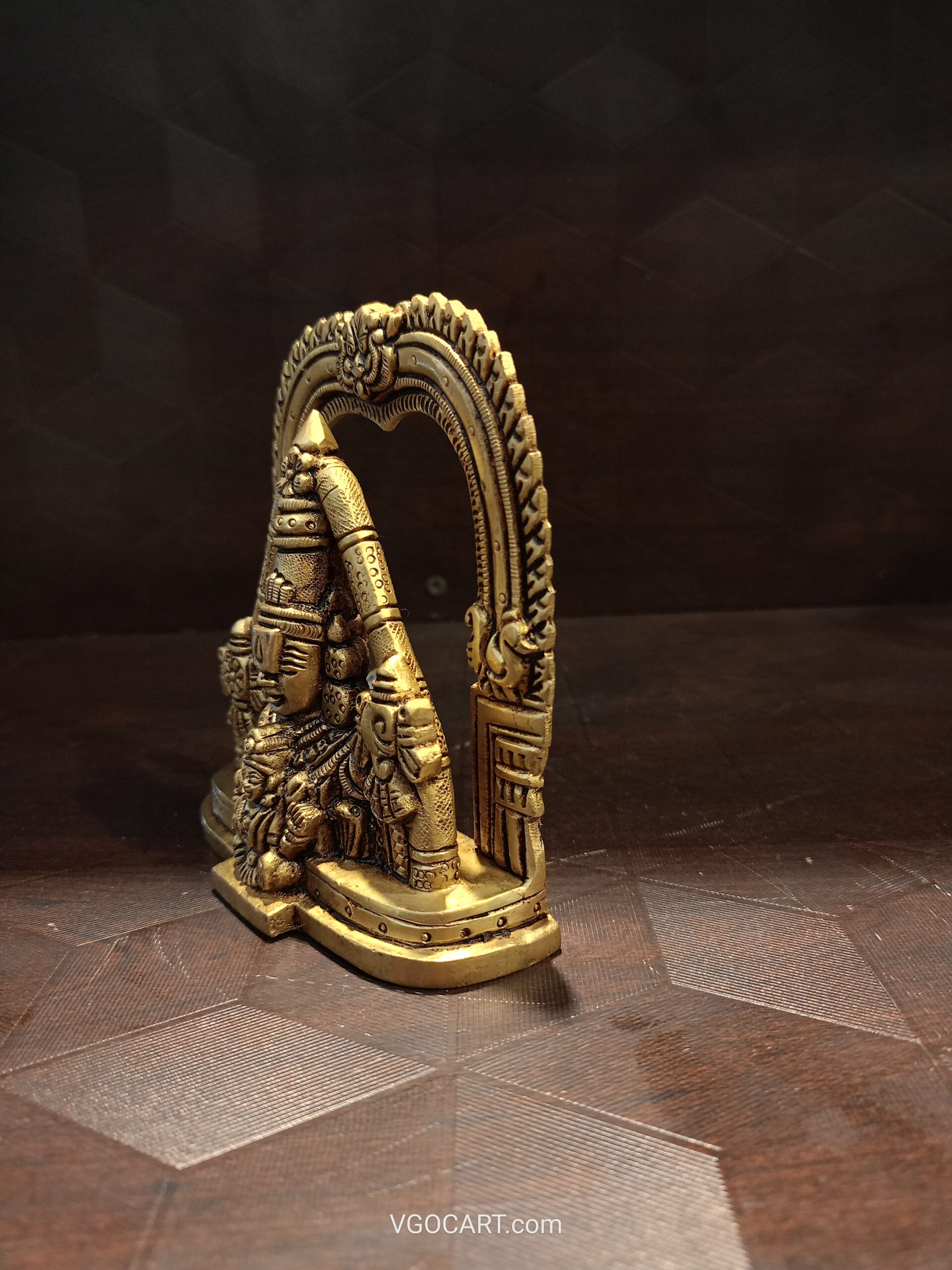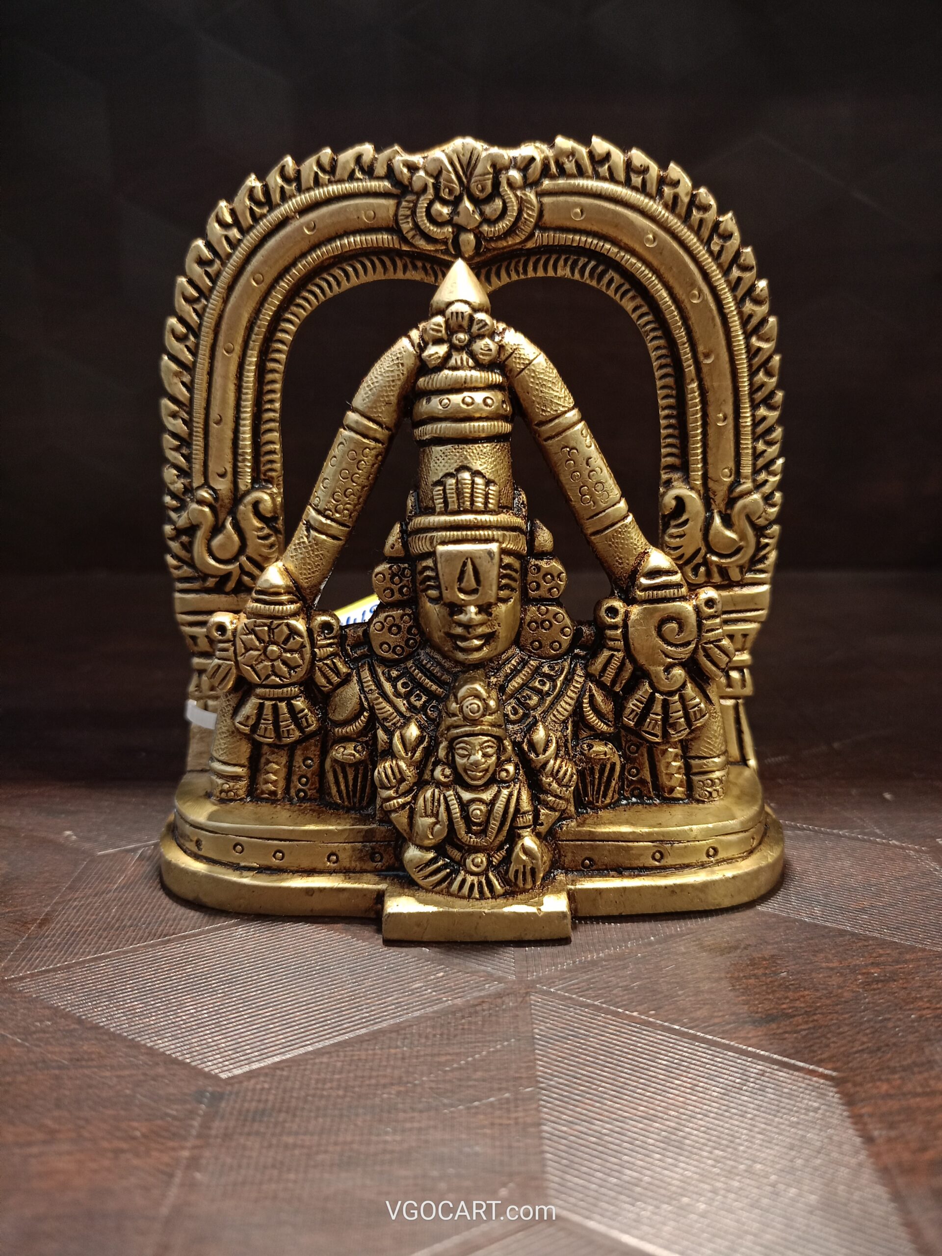 Brass Venkateshwara statue with Lakshmi is the main incarnation of Lord Vishnu who performs the act of protection. The term Venkatachalapathy means destroyer of sins. This handcrafted brass statue of Venkateshwara is carved with detailed structure and icons with artistic designs, which brings the presence of divinity in real.