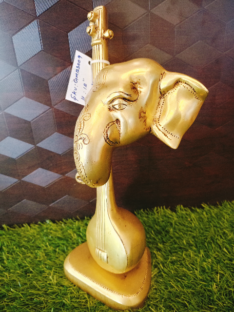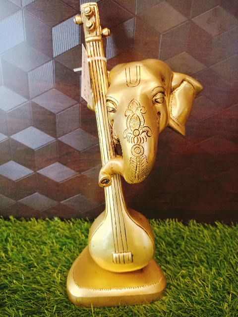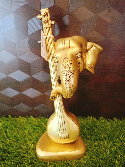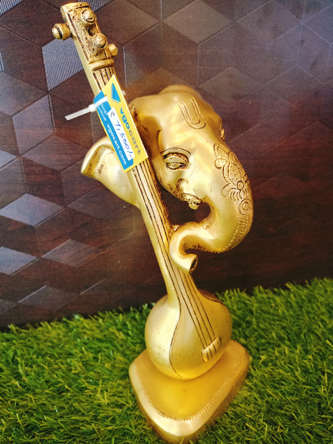Modern Brass Ganesh Statue is VGOCART unique Design .Veena in the Modern Brass Ganesh Symbolize the Knowledge and the Modern Brass Ganesha Head depicted on the Veena,Crafted with Premium Brass with intricate detailing Brings Peace and Prosperity and Power of Music.