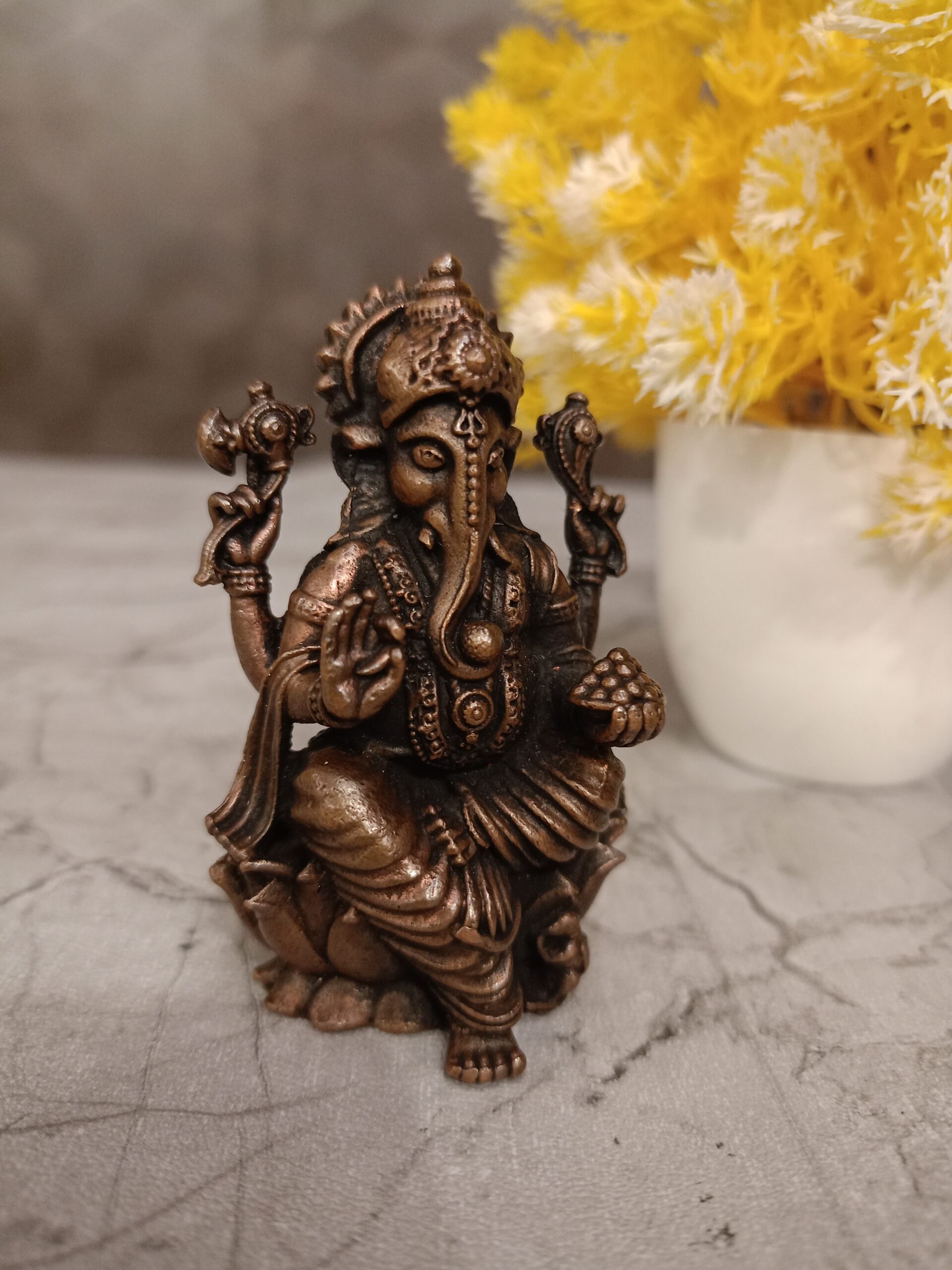 Buy Panchaloha Ganesha Sitting On Lotus Statue 3″