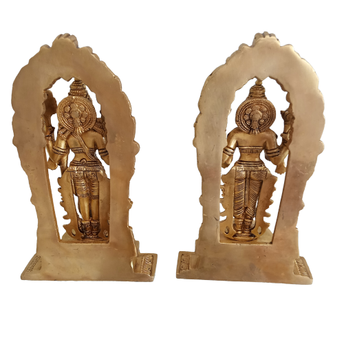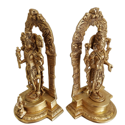 Lord Vishnu and Lakshmi with Arch Brass Statue is depicted in a standing position with decorated arch, base and grand jewels that creates a rich look. This statue indicates the relationship between the divine couple.