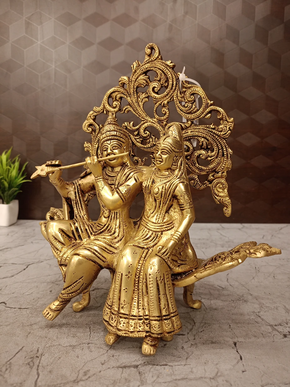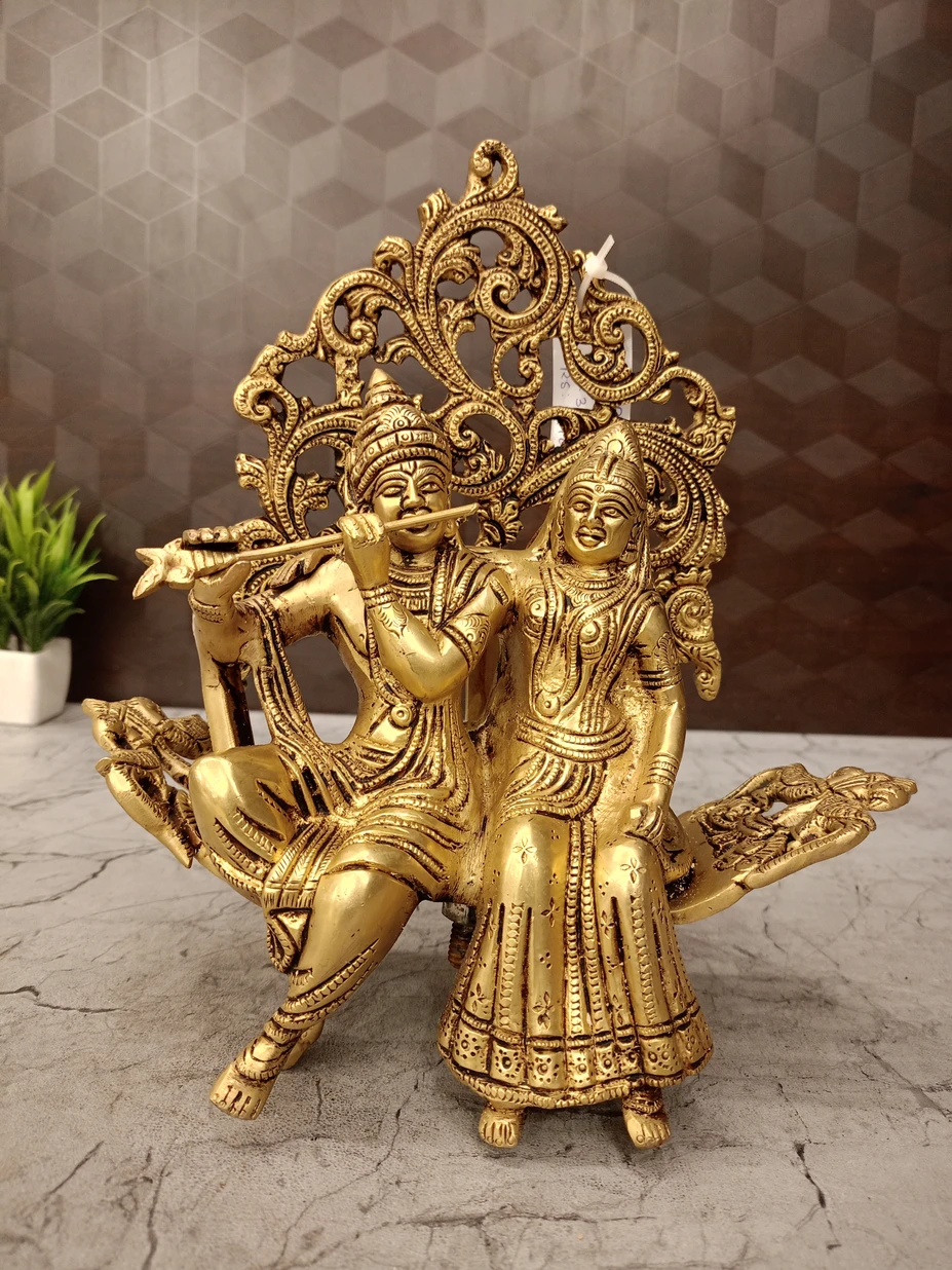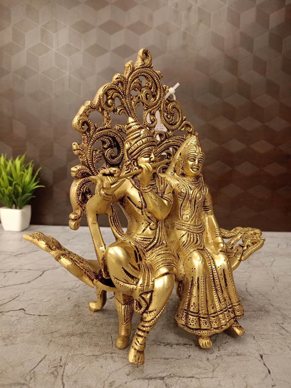 Whether placed in a pooja room, spiritual center, or luxury living space, this Brass Radha Krishna Designer Sofa transforms the environment with positive energy, divine beauty, and unmatched grandeur.