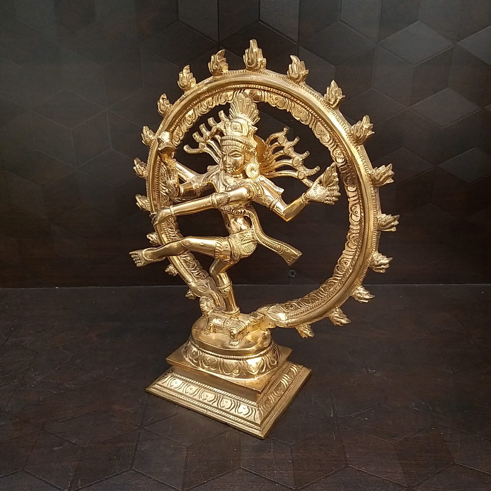 This Panchaloha Nataraja Statue is worshipped to enhance the artistic qualities and creative senses. Placing the Natarajar statue in the northeast corner is considered auspicious. The best place to keep this Panchaloha idol of Nataraja is at home, dance, and other art academies and also be an adorable gift for dancers and art people.