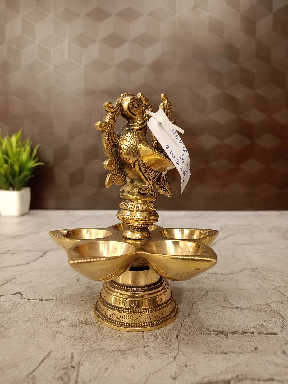 Illuminate your sacred space with this Premium Brass Annam Five Face Diya for Pooja – 6 Inch, a timeless symbol of divine light, purity, and spiritual abundance. Expertly handcrafted from high-quality solid brass, this authentic oil lamp showcases a beautifully detailed Annam (Swan) design with five faces, representing protection, prosperity, and positive energy.