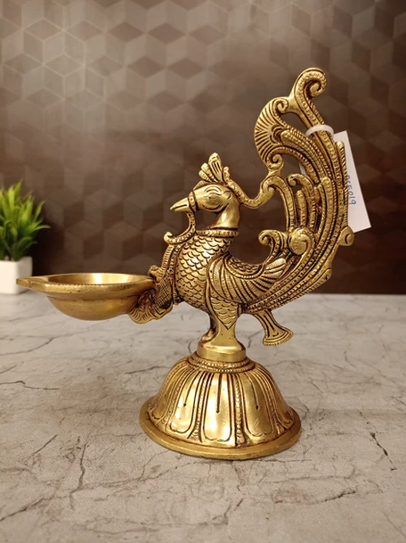 Whether used as a spiritual lamp or an elegant décor accent, this premium brass peacock diya makes an ideal gift for housewarming, weddings, and festive occasions, bringing warmth, prosperity, and positive vibrations into any environment.