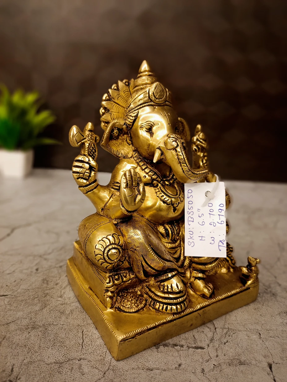 Premium Brass Square Base Ganesha Idol | Lord Ganpati Murti for Home & Gifting