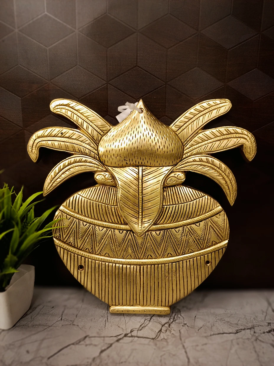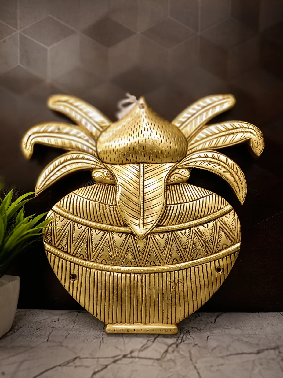 Crafted from premium-quality solid brass, this wall-mounted Kalasam idol reflects exquisite craftsmanship and spiritual depth. Its radiant brass finish and traditional design make it a powerful addition to your entrance wall, pooja room, temple, or sacred corner.
