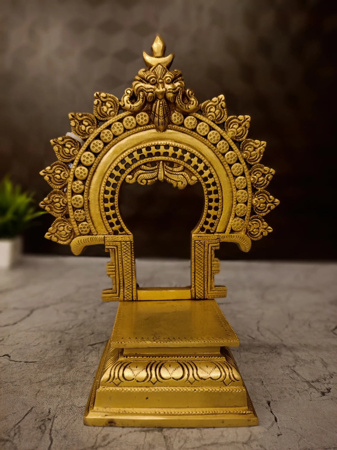 Ideal for placing behind Ganesha, Amman, Murugan, Ayyappa, Krishna, or other deities, this Brass Well Design Thiruvachi enhances the spiritual presence of the idol and creates a majestic, temple-like atmosphere at home.